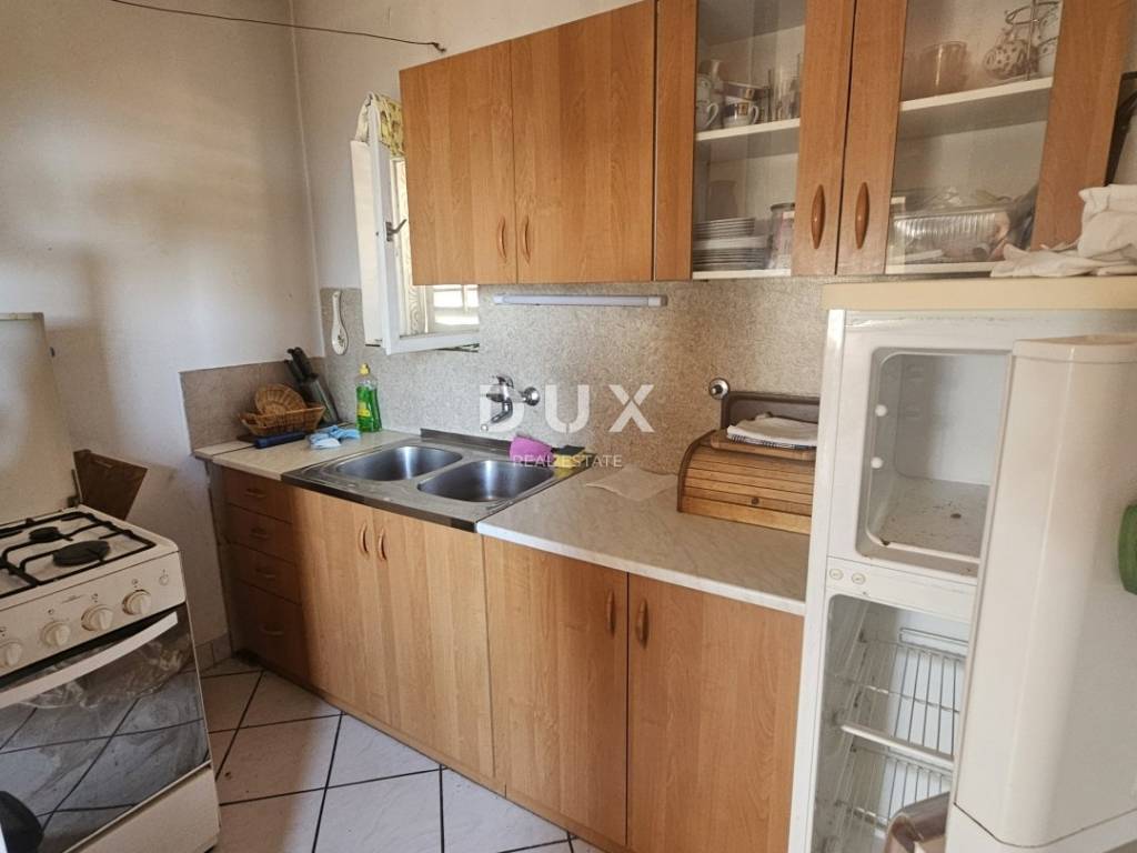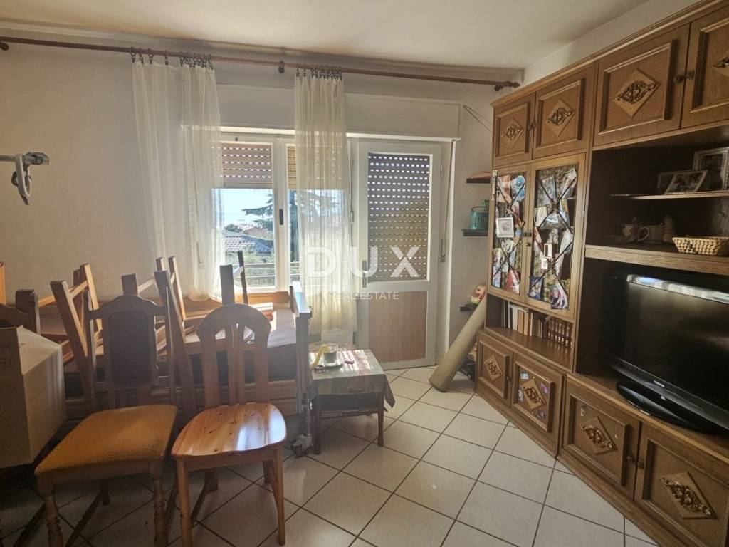 Exclusively in our offer we sell a 2-bedroom + living room apartment. It is located in a house with a total of three apartments. It is located on the first floor. It consists of an entrance hall, kitchen with dining room and living room, two bedrooms, bathroom. The living room leads to a balcony, and from the dining area to a beautiful terrace with a beautiful view of the sea and the Kvarner Bay. It needs to be renovated and refreshed. The apartment also has a woodshed, part of the garden and a parking space. A very interesting property worth considering.