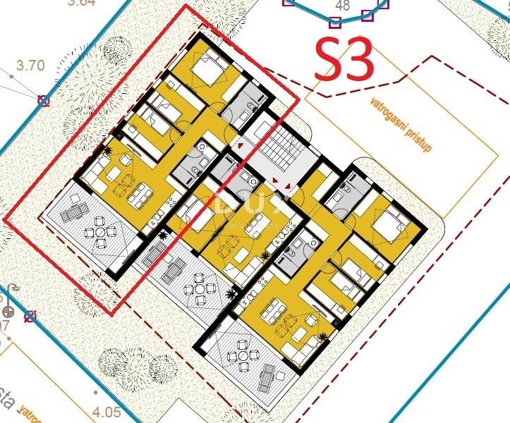 Apartment S3 is located on the 1st floor of a building with a total of nine apartments, oriented to the southwest, which ensures plenty of natural light and a pleasant atmosphere throughout the day.