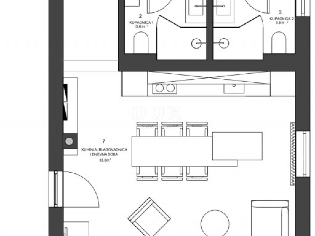 Just 95 meters from the sea, in the quiet town of Zaton, a modern project is being built with nine luxury apartments located in a closed resort with a ramp at the entrance. The settlement is designed as a private oasis, consisting of five buildings, where residents enjoy complete security and privacy. Apartments on the upper floors have spacious roof terraces with a beautiful view of the sea and islands, while ground floor units have their own gardens. There is also the option of purchasing fully furnished apartments for an additional fee. Special attention has been paid to interior design, modern technological solutions and quality materials to make the home functional, safe and comfortable. The smart home system allows for the control of lighting, air conditioning and heating, and the construction is carried out with a reinforced concrete structure with 10 cm of thermal insulation. Aluminum joinery with electric shutters, multi-split air conditioners, underfloor heating in the bathrooms and living room, video intercom, surveillance cameras and burglar and fire doors are part of the standard equipment. First-class sanitary ware and floor coverings from renowned manufacturers were used. The planned completion of the works is by the end of 2025. Penthouse SA4 is located on the second floor and consists of two bedrooms, two bathrooms, a storage room and a spacious living area with a kitchen and dining room. Its special value is the roof terrace with a beautiful view of the sea and a parking space in the garage. Zaton is a quiet Dalmatian town known for its crystal clear sea, pebble beaches and relaxed Mediterranean atmosphere, while Zadar is nearby - a city rich in history, cultural attractions and top-notch restaurants, an ideal destination for living and vacation. The seller is a legal entity and the buyer does not pay real estate tax. For all additional information and to arrange a viewing, please feel free to contact us.