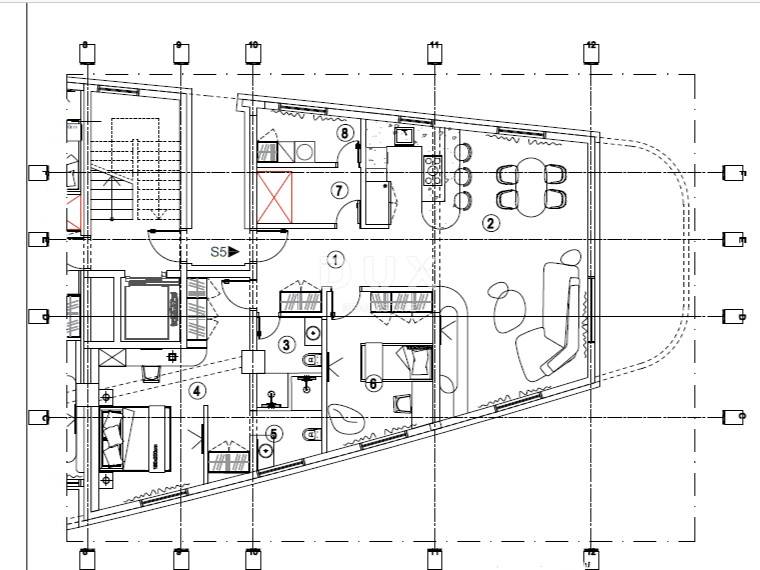 DUX exclusively presents a special new building between the city of Rijeka and beautiful Opatija. The top-quality building is located in the residential part of Kantrida, one of the highest quality and most desirable neighborhoods in the Kvarner Bay. This building with a total of 29 exclusive apartments is located in a dead-end street with no traffic, with completely built-up neighbors, which guarantees a safe view of the sea and a quality and peaceful environment for living. It is important to note that this building has a panoramic view of the sea from each apartment, even from the ground floor. The building has two underground garage floors where there are 68 parking spaces and storage rooms belonging to each apartment. Apartment S5, 155m2, is located on the 1st floor and consists of two bedrooms, two comfortable bathrooms, a kitchen, a dining room and a living room. The apartment communicates with a beautiful covered terrace from which a truly panoramic view of the sea is offered. The gross area of the apartment is 290m2. The usable area of the apartment is 101m2, while the net area with coefficients (terrace, garage and storage room) is 155m2. Advantages and special features of the building's equipment: - Each living room is south-facing - The building is divided into 3 entrances, which ensures privacy and a divided micro-neighborhood where you create a community - Comfortable parking spaces in the garage - Elevator - Security doors - Underfloor heating throughout the apartment, heat pump - Ceiling height 280cm !!!! - Aluminum joinery, large south-facing sliding walls + electric shutters - Austrian parquet - Top-quality ceramics and top sanitary ware - Sound insulation in the walls The apartment comes with one comfortable parking space in the garage and one private storage room. This micro-location is fantastic, with a crow's-eye view of 250 meters from the sea, you can reach the sea on foot in just 4 minutes, while in the immediate vicinity there are shops, schools, a football pitch, a sports hall, a beach, a city swimming pool for swimmers and water polo players, and restaurants. Also, the ideal environment emphasizes the proximity of the center of Rijeka, which can be reached in 10 minutes, as well as the proximity of Opatija, only 12 minutes by car. Take the opportunity to buy a top-quality new building in Kvarner, an ideal opportunity to live in a new building with a panoramic sea view. To arrange a visit to the property, call the agent with confidence - consultation in German is possible.