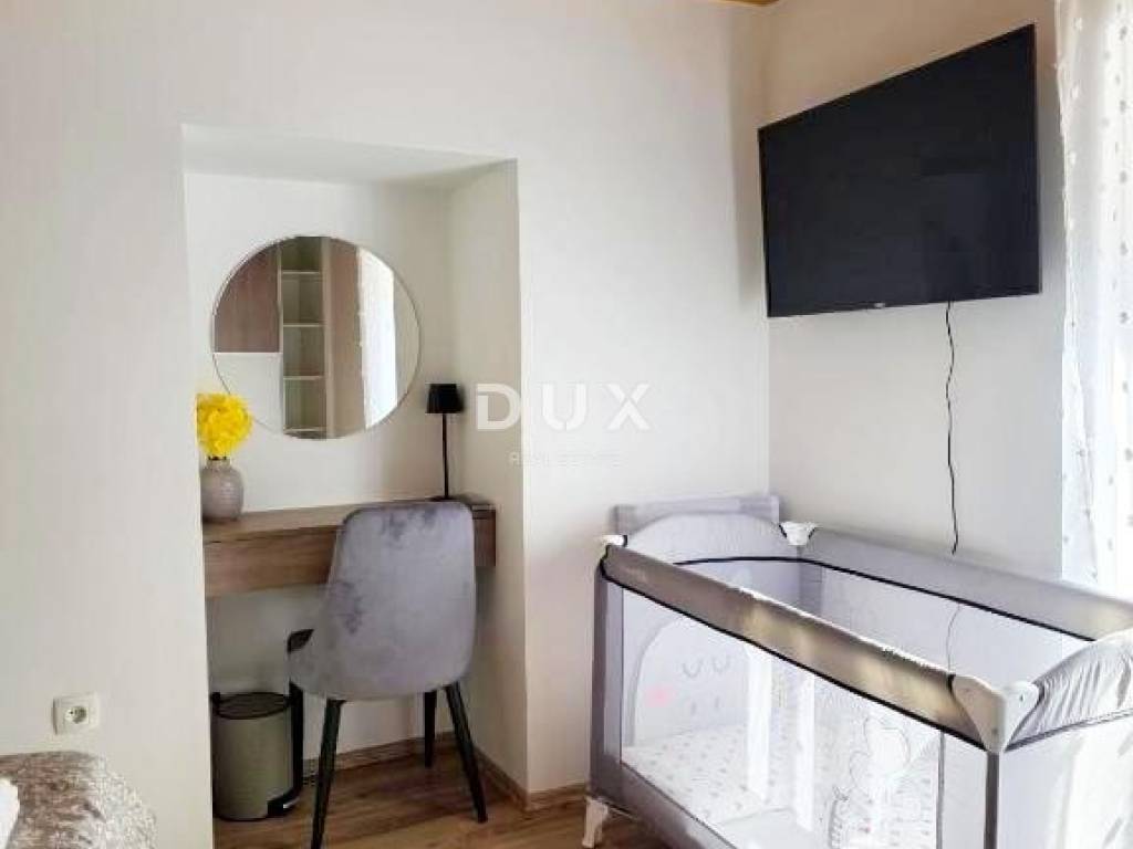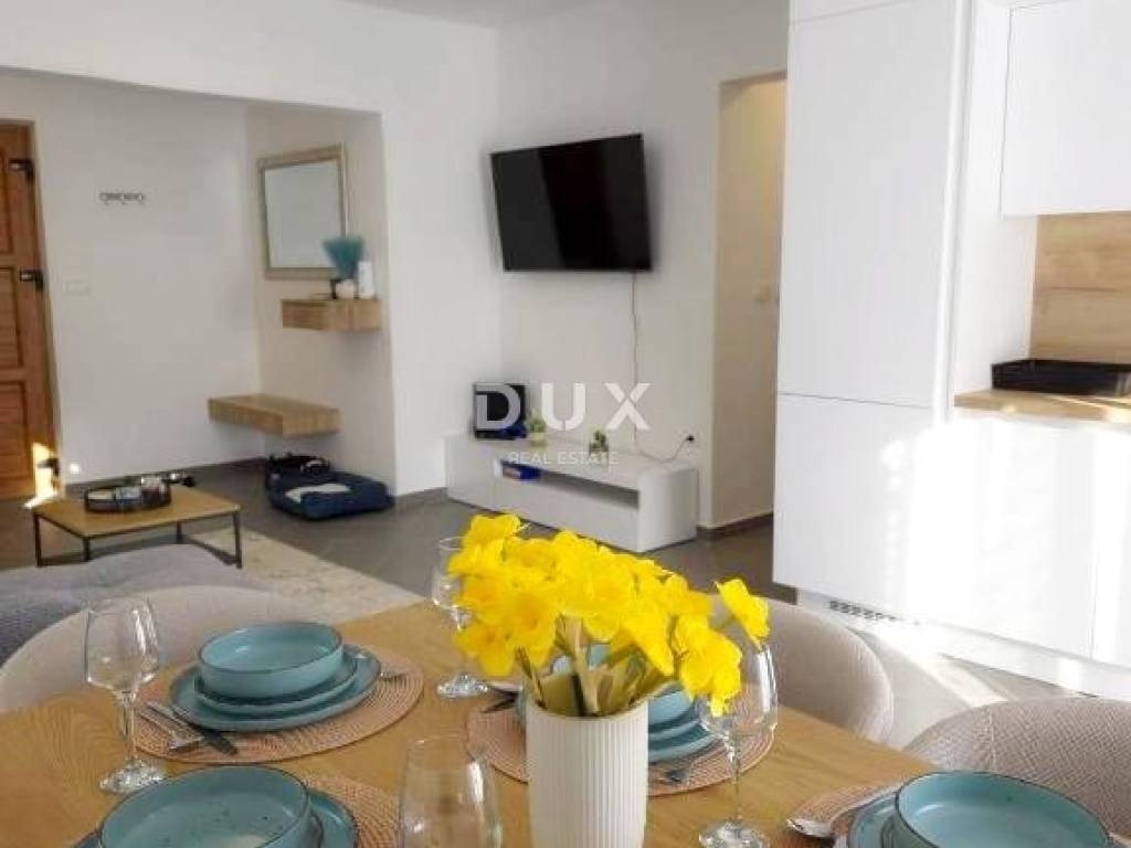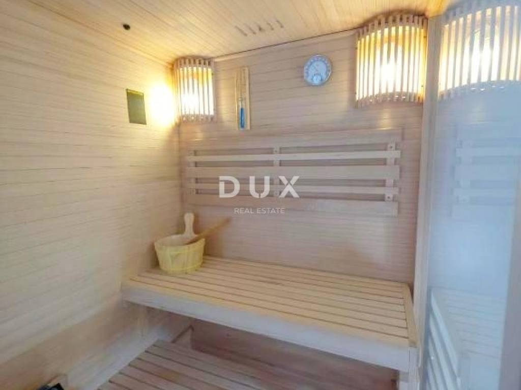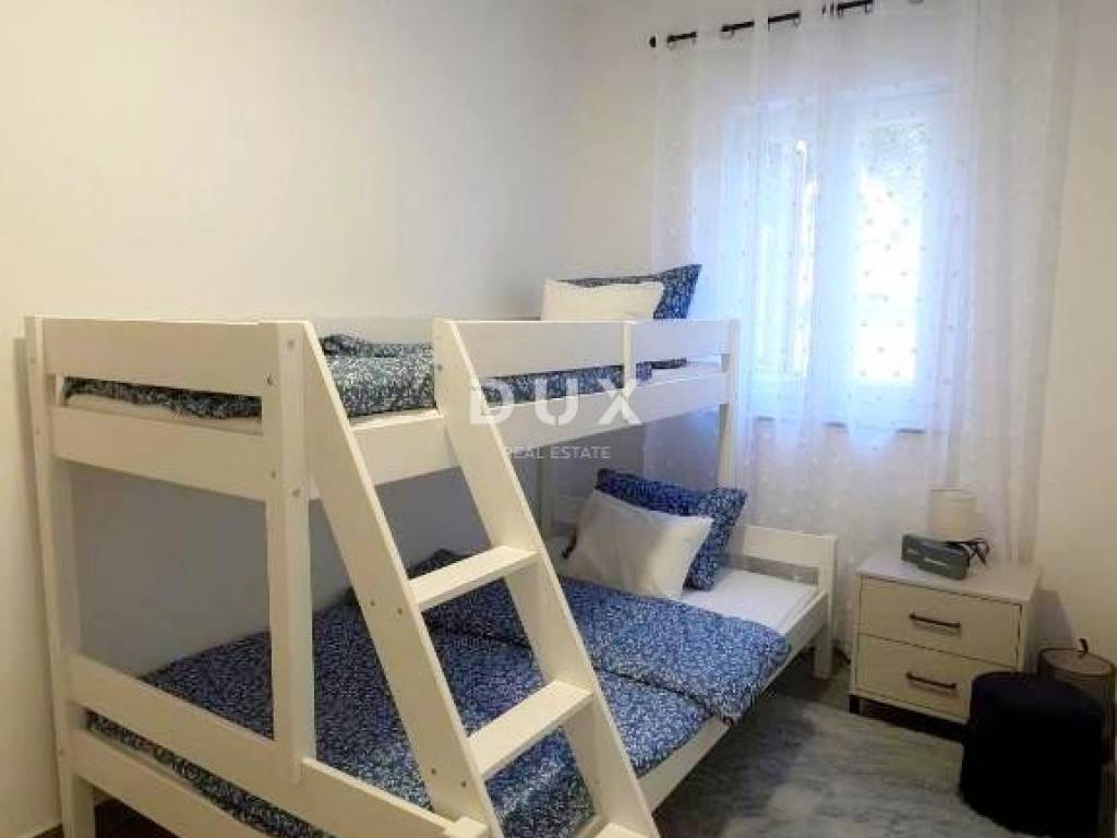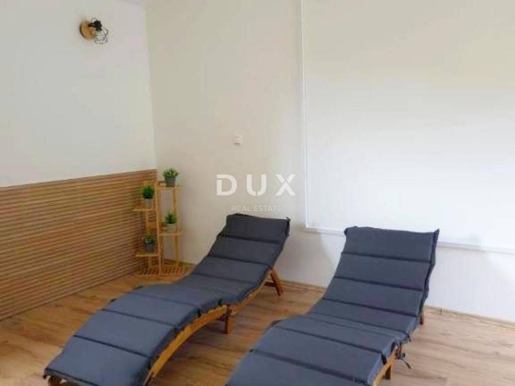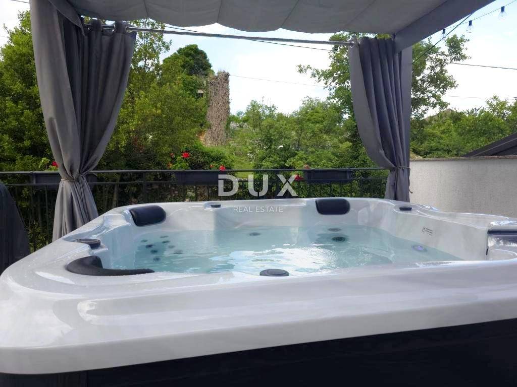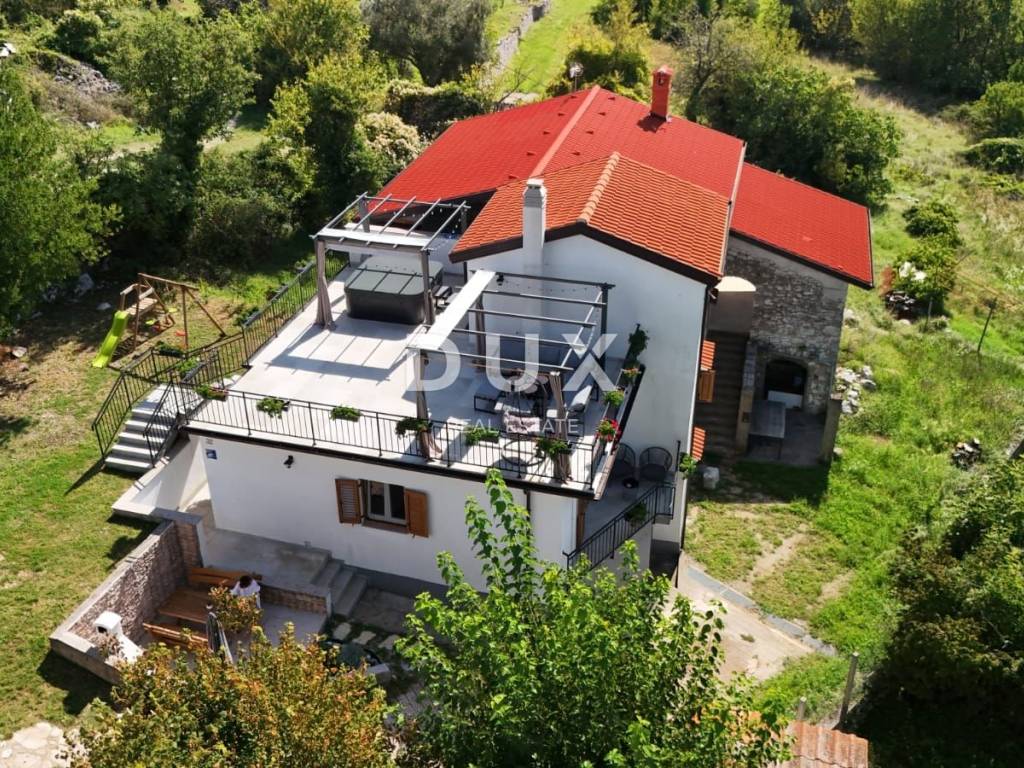 On the slopes above the Adriatic coast, in a quiet and green corner of Kvarner, there is a completely renovated semi-detached house, perfectly integrated into the natural environment. This 130 m property is spread over three floors and is located on a landscaped plot of 300 m. Just a few minutes' drive from the sea and one of the most beautiful natural beaches in the region, it represents the ideal combination of functional space and hedonistic atmosphere. In the basement of the house there are two separate rooms with separate entrances that currently serve as storage and a relaxation area, but also offer the possibility of conversion as needed - whether you want a private studio, home office or hobby area. The central part of the house, the ground floor, is designed as a warm and airy living space that combines a modernly equipped kitchen, dining room and living room with access to the terrace. Two bedrooms and an elegant bathroom complete this floor and make it ideal for family life or vacation. The most surprises are hidden on the upper floor a luxurious private wellness area designed as a haven for the regeneration of body and spirit. A Finnish sauna, a covered jacuzzi and a terrace with a seating area under a pergola offer a unique view of the greenery and relaxing silence. The garden is fully landscaped and designed to meet the needs of all generations. Here you will find a private parking lot, a children's play area, a barbecue area and a paved access to the house. Everything is thoughtfully arranged and ready for use whether for personal needs or tourism. The house has been renovated in detail including all installations, floors, wall coverings, sanitary facilities and furniture. The installation of air conditioning ensures a pleasant stay throughout the year. Access is provided by an asphalt road, and public transport is available just 300 meters away. Its location gives this property a special value. Surrounded by nature, yet extremely well connected it is only ten minutes away from the ferry port with connections to Cres and Lošinj, while Opatija, Rijeka and Matulji are easily accessible by car. Lovers of an active lifestyle will find numerous opportunities for hiking and cycling on Učka, as well as excellent conditions for diving, swimming and exploring the coastal beauties. The proximity of Italy, Trieste and Venice further adds to the value of the location, making this property an ideal choice for those who want a balance between a Mediterranean lifestyle and European connectivity. Whether you are looking for a private retreat away from the hustle and bustle of the city or an investment with excellent return potential, this house offers exceptional value, a high level of comfort and a wealth of possibilities - all in the authentic and enchanting surroundings of Kvarner.