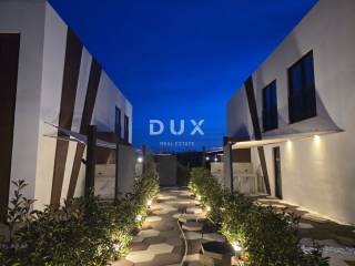 For sale are four modernly decorated apartments in building A (units A1, A2, A3 and A4), each with a separate entrance, a private garden of 70 to 100 m2 and a secured parking space with an e-charger. The sizes range from 166 to 194 m2 of total area (104 to 111 m2 net). The interior layout is carefully designed - the lower floor consists of a spacious living room in an open space concept with a dining room and a custom-made kitchen equipped with Electrolux appliances, and there is also a private wellness area with a Finnish sauna, shower and additional toilet. Upstairs there are two bedrooms with Portuguese cork floors, each with its own en-suite bathroom. Each apartment has its own private outdoor space for enjoyment a 5.5 x 2.5 m swimming pool with automatic pH meter and pre-installation for a heat pump, a pool cleaning robot, an outdoor kitchen, sun sails and a terrace made of ipe lapacho wood. The price also includes a built-in kitchen with all appliances, custom-made wardrobes, fully equipped bathrooms with Italian A-class ceramics, additional underfloor heating in all rooms, a heating and cooling system using Daikin heat pumps, a 6.4 kW solar power plant with a 10 kW tank and an advanced monitoring and remote temperature control system. The town of Nin and nearby Zadar offer the perfect blend of Mediterranean lifestyle, history and modern amenities. Nin is the oldest royal town in Croatia, known for its long sandy beaches and crystal clear sea, while Zadar is known for its rich cultural heritage, numerous restaurants, concerts and world-famous installations such as the Sea Organ. For more information and to arrange a viewing, please feel free to contact us.