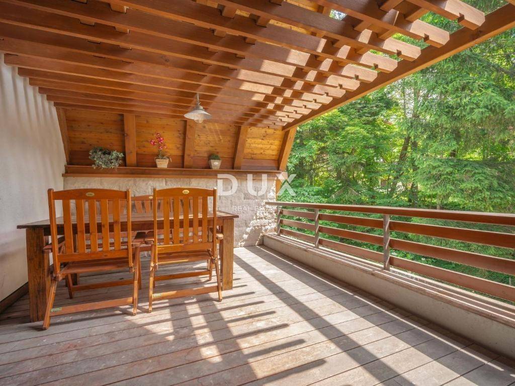 We mediate in the sale of a beautiful house in a fairytale setting! The detached house of recent construction is located in a special location surrounded by greenery. It represents a unique opportunity for a cottage or an investment, given the well-established rental business. The house is not prefabricated. It consists of a ground floor and a first floor. On the ground floor there is a wellness area with a jacuzzi and a sauna, as well as an exit to a large terrace and peaceful green surroundings. On the ground floor there is also a living room with a kitchen and a dining room. Upstairs there are two bedrooms and two bathrooms, as well as a spacious covered terrace. One of the main advantages of the property is its location in the very heart of Gorski Kotro. The proximity of the Fužina Lake and Risnjak National Park are reason enough to view this property! Agent's recommendation!
