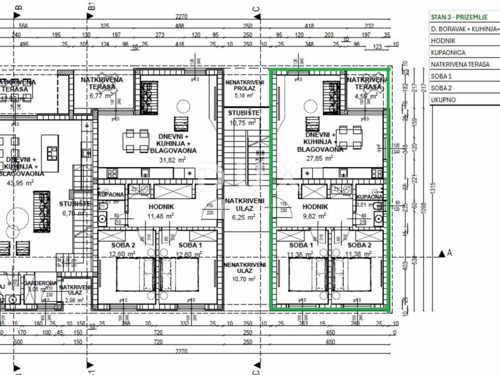 In the offer of DUX real estate we present an apartment in a new project in a great location in the city of Poreč near schools, shops, beaches and all other amenities. The project is located in a quiet street surrounded by family houses in the immediate vicinity of the green area of the city of Poreč. The apartment offers 66 m2 of living space and a 140 m2 garden. The apartment also comes with two parking spaces and a 5 m2 storage room. Start of work 9/2025, expected end of work 12/2026. TECHNICAL FEATURES: 1. underfloor heating with a heat pump throughout the apartment 2. electric shutters with mosquito nets 3. 3 air conditioners 4. preparation for a charger for electric cars The apartment consists of an entrance hall, two bedrooms, bathroom, living room with kitchen and dining room in one open space with access to a covered terrace and garden. The seller is a legal entity, therefore the buyer is exempt from paying real estate tax.