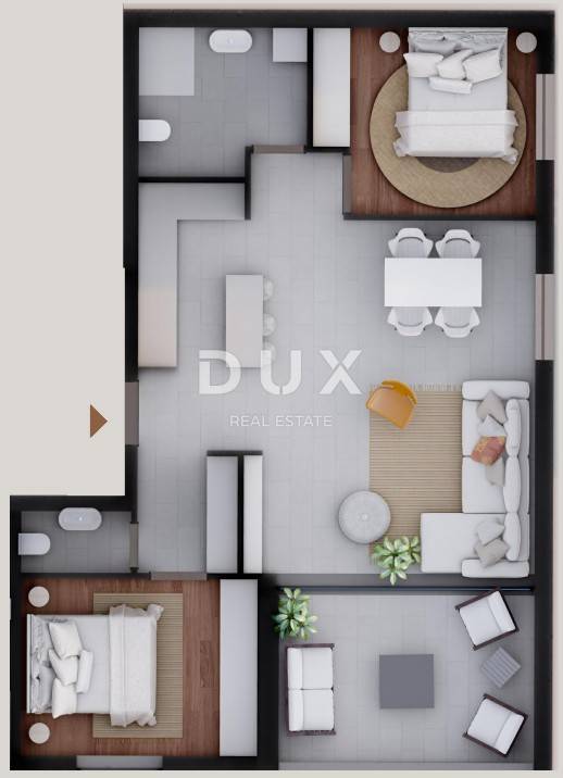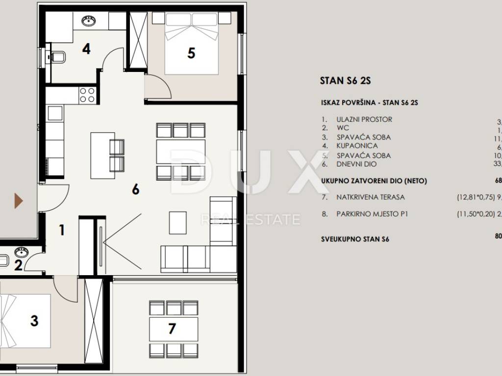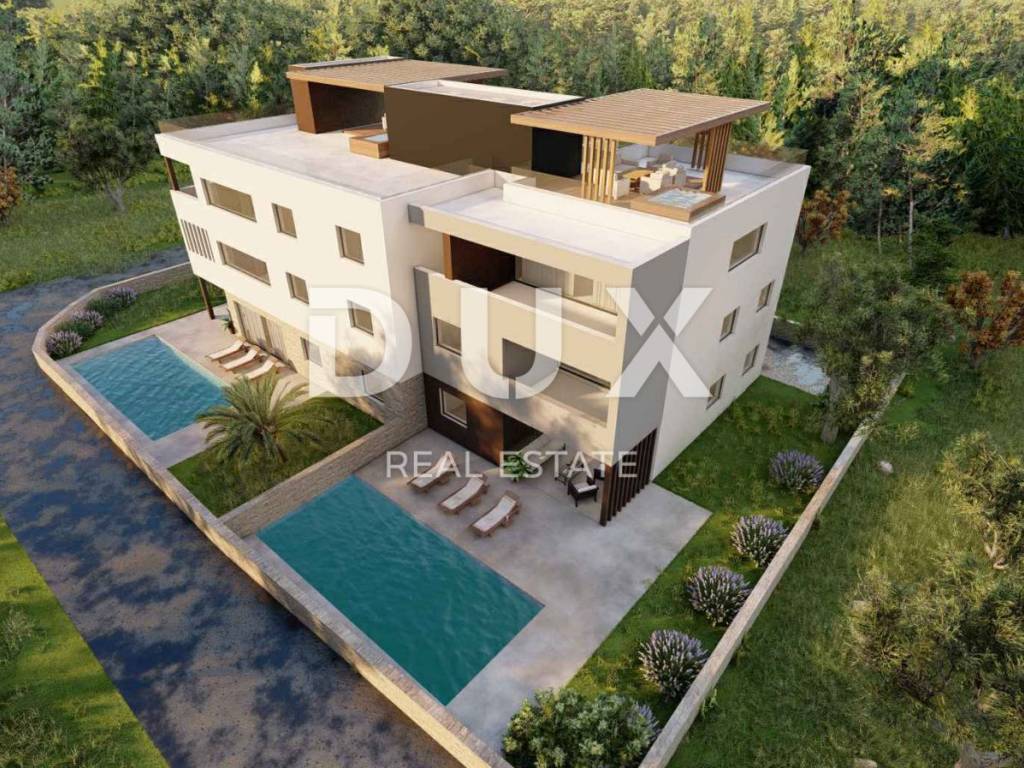 In an exceptional location, just 50 meters from a beautiful sandy beach with a cafe, this modern new building with a total of eight apartments is located, perfectly integrated into a peaceful and luxurious environment. The building exudes contemporary design and top construction standards - the entire external structure is made of reinforced concrete, which ensures superior strength, durability and resistance to weather conditions. All apartments have a sea view, electric shutters, mosquito nets, triple-layered glass and lift-sliding walls that allow for plenty of light and an undisturbed experience of nature. The S6 apartment is located on the first floor and includes two bedrooms, a modern bathroom with underfloor heating, an additional toilet, a living room with access to a covered terrace with a sea view. It also has one private parking space. Air conditioning is installed in all rooms, and the most modern joinery has been installed for maximum comfort. The building has three apartments on the ground floor, each with a garden and terrace, while two apartments also enjoy their own swimming pool. The penthouse apartments on the second floor additionally offer walk-through roof terraces with panoramic views. The seller is a legal entity, which means that the buyer is exempt from paying real estate tax. The planned completion of construction is in the fall of 2026. The location of this property further increases in value thanks to its proximity to the historic town of Nin, the popular Zaton Holiday Resort, the island of Vir and the beautiful city of Zadar, which is only a twenty-minute drive away. Privlaka is an increasingly sought-after place for vacation and living - a combination of peace, natural beauty and modern infrastructure. For all additional information and viewings, please feel free to contact us - we will be happy to help you find your corner by the sea.