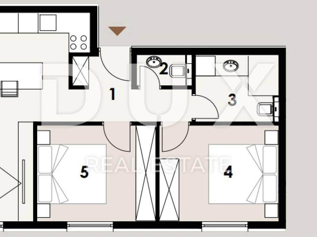 ZADAR, PRIVLAKA - New building 50 meters from a sandy beach with a sea view! S5.