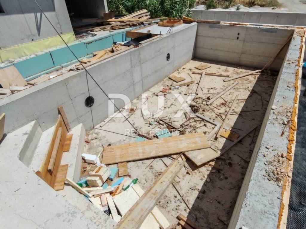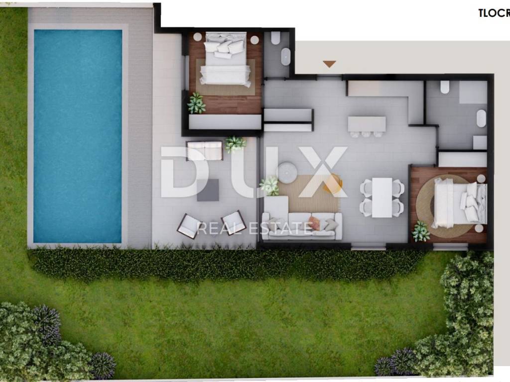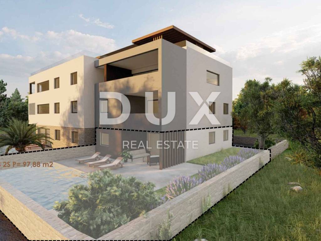 In an exceptional location, just 50 meters from a beautiful sandy beach with a cafe, this modern new building with a total of eight apartments is located, perfectly integrated into a peaceful and luxurious environment. The building exudes contemporary design and top construction standards - the entire external structure is made of reinforced concrete, which ensures superior strength, durability and resistance to weather conditions. All apartments have a sea view, electric shutters, mosquito nets, triple-layered glass and lift-sliding walls that allow for plenty of light and an undisturbed experience of nature. The S3 apartment is located on the ground floor and includes two bedrooms, a modern bathroom with underfloor heating, an additional toilet, a living room with access to a covered terrace, a private garden with a swimming pool and a sea view. It also has one private parking space. Air conditioning is provided in all rooms, and the most modern joinery has been installed for maximum comfort. The building has three apartments on the ground floor, each with a garden and terrace, while two apartments also enjoy their own swimming pool. The penthouse apartments on the second floor additionally offer walk-through roof terraces with panoramic views. The seller is a legal entity, which means that the buyer is exempt from paying real estate tax. The planned completion of construction is in the fall of 2026. The location of this property further increases in value thanks to its proximity to the historic town of Nin, the popular Zaton Holiday Resort, the island of Vir and the beautiful city of Zadar, which is only a twenty-minute drive away. Privlaka is an increasingly sought-after place for vacation and living - a combination of peace, natural beauty and modern infrastructure. For all additional information and viewings, please feel free to contact us - we will be happy to help you find your corner by the sea.