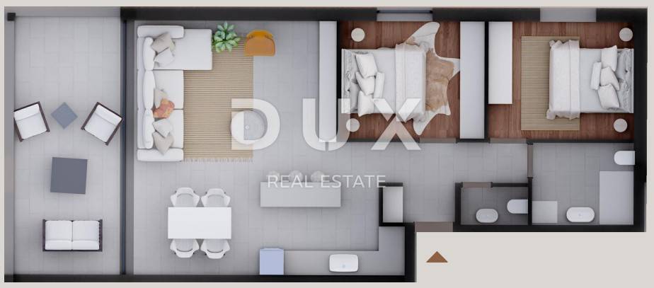 In an exceptional location, just 50 meters from a beautiful sandy beach with a cafe, this modern new building with a total of eight apartments is located, perfectly integrated into a peaceful and luxurious environment. The building exudes contemporary design and top construction standards - the entire external structure is made of reinforced concrete, which ensures superior strength, durability and resistance to weather conditions. All apartments have a sea view, electric shutters, mosquito nets, triple-layered glass and lift-sliding walls that allow for plenty of light and an undisturbed experience of nature. The S4 apartment is located on the first floor and includes two bedrooms, a modern bathroom with underfloor heating, an additional toilet, a living room with access to a covered terrace with a sea view. It also has one private parking space. Air conditioning is installed in all rooms, and the most modern joinery has been installed for maximum comfort. The building has three apartments on the ground floor, each with a garden and terrace, while two apartments also enjoy their own swimming pool. The penthouse apartments on the second floor additionally offer walk-through roof terraces with panoramic views. The seller is a legal entity, which means that the buyer is exempt from paying real estate tax. The planned completion of construction is in the fall of 2026. The location of this property further increases in value thanks to its proximity to the historic town of Nin, the popular Zaton Holiday Resort, the island of Vir and the beautiful city of Zadar, which is only a twenty-minute drive away. Privlaka is an increasingly sought-after place for vacation and living - a combination of peace, natural beauty and modern infrastructure. For all additional information and viewings, please feel free to contact us - we will be happy to help you find your corner by the sea.