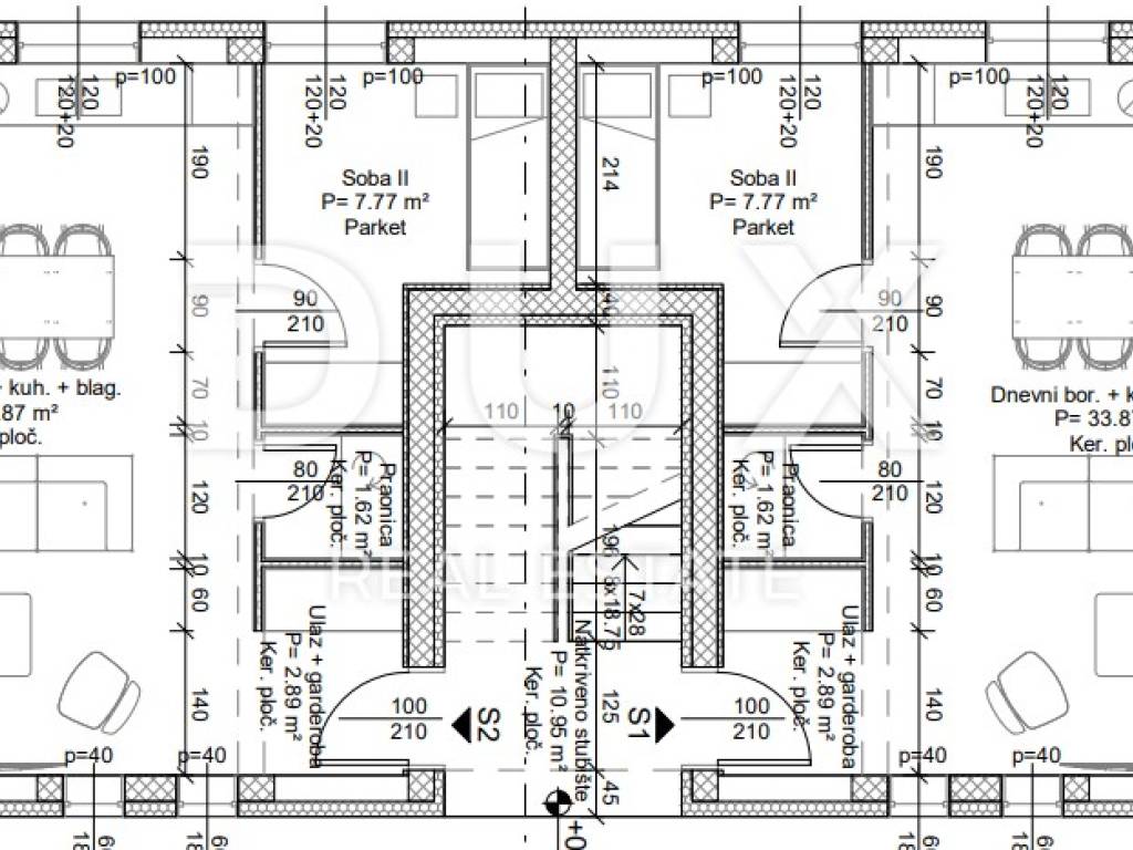 For sale is a modernly designed new building with a total of four apartments, located in a quiet part of Privlaka, just 830 meters from the sea. Each apartment offers a sea view. Enjoy the walking distance to the beach, which is only a 15-minute walk away, while it takes you less than two minutes by car. The building has been thoughtfully designed so that all apartments provide maximum comfort and functionality - they consist of two bedrooms, a bathroom, a spacious living room, a kitchen with a dining area and a covered terrace. Each apartment has its own laundry room and wardrobe - details that make everyday life simpler and tidier. The ground floor apartments also delight with their own fenced gardens, perfect for relaxing and spending time outdoors, while the penthouses also have private roof terraces with panoramic views - ideal for summer gatherings, sunbathing or enjoying the evening under the stars. The ground floor apartments have a living area of 65.64 m2 (excluding garden and parking spaces), while the penthouses offer a spacious 84.4 m2 of living area (excluding parking), making them perfect for those who want more space and luxury. Each apartment has two parking spaces, and the high standard of equipment includes underfloor heating throughout the apartment, air conditioning in all rooms and the living room, electric shutters and mosquito nets all for maximum comfort throughout the year. The completion of construction is planned by summer 2026, which gives you plenty of time to plan your move in or investment. Privlaka is a charming Dalmatian town known for its sandy beaches, crystal clear sea and family atmosphere. It is located in the immediate vicinity of the city of Zadar a historical jewel with a rich cultural heritage, excellent gastronomy and an airport that connects you to the whole of Europe. If you are looking for a home by the sea, the perfect holiday property or a smart investment in an attractive part of Dalmatia contact us. This is an opportunity you don't want to miss.