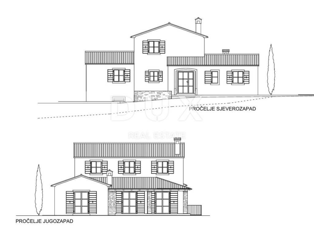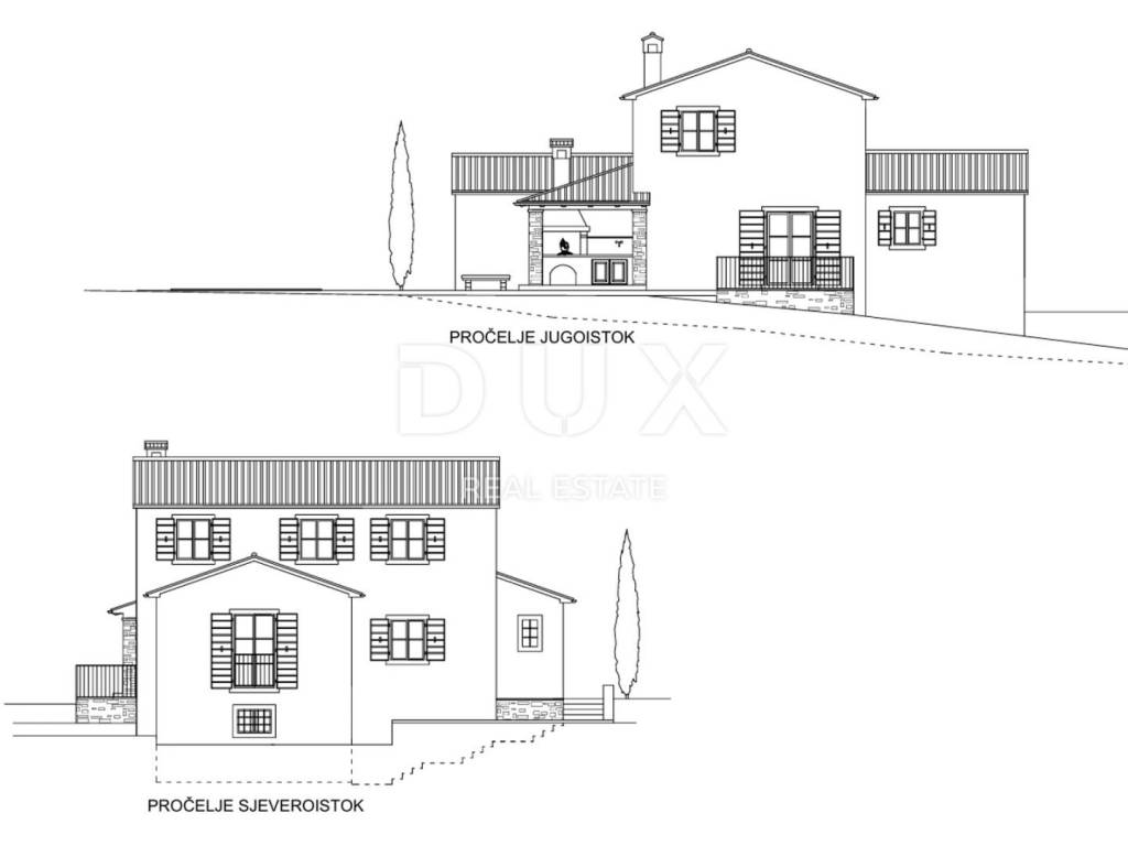 U mirnom i zelenilom okruženom istarskom selu, nudimo građevinsko zemljište površine 982 m s pravomoćnom građevinskom dozvolom za izgradnju luksuzne rustikalne vile koja spaja autentični mediteranski ugođaj s modernim komforom.