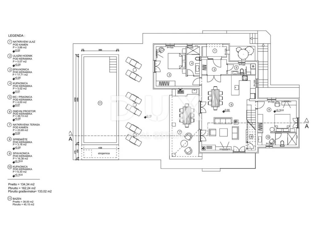 Prema projektu, budući objekt imat će ukupno 216,68 m neto stambenog prostora, raspoređenih na tri etaže, te bazen površine 38 m idealno za obiteljski život ili ulaganje u turistički najam.