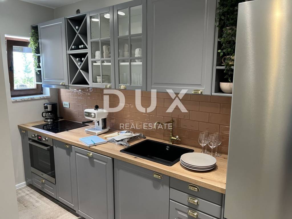 From our offer we highlight a beautiful apartment for long-term rent. It is a spacious ground floor apartment measuring 70m2 with two bedrooms, a large bathroom, a living room with a kitchen and dining room and a private balcony with a sea view. The apartment is located in a building with a total of 6 apartments that was newly renovated in 2022. There is a shared heated swimming pool available for the household, and a beautiful private oasis for enjoyment. The rent also includes a private parking space within the building. An exceptional amount of effort has been invested in the interior design and attention has been paid to every detail. The owners themselves live in the building, which guarantees a regularly maintained garden and pool. The property is located in a quiet dead-end street in Ičići, surrounded by greenery and a sea view. You can reach the Ičići beach or Lungomare promenade in 10 minutes on foot downhill or 3 minutes by car. A truly rare opportunity for those looking for a comfortable home FOR LONG TERM RENTAL!