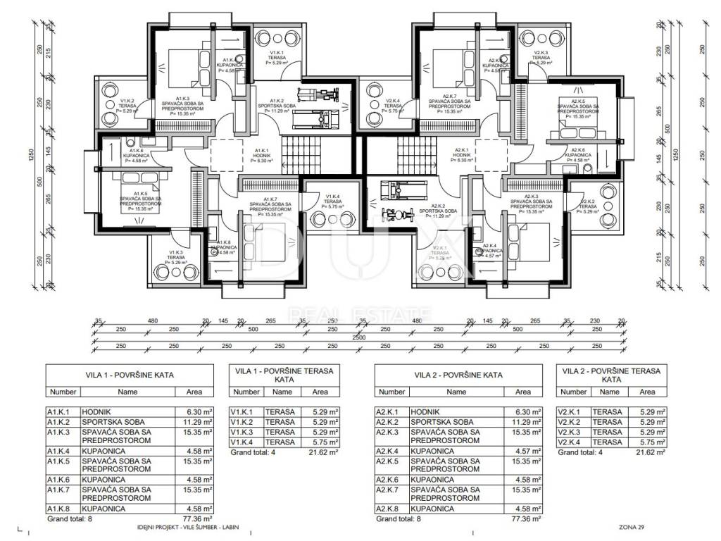 ISTRA,LABIN - Zemljište s građevinskom dozvolom za dvojnu kuću s bazenom