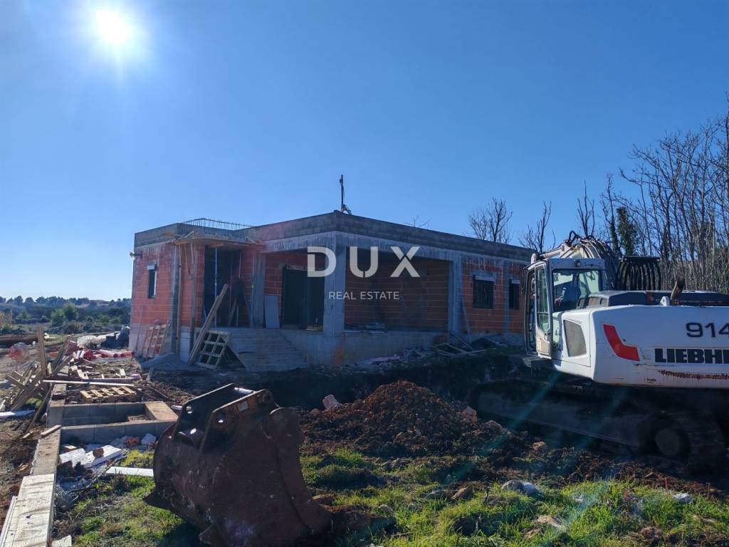 Exclusive ground-floor villa with a pool on the island of Vir, the perfect combination of luxury and comfort! This elegant property extends over 180 m2 of net area, situated on a spacious plot of 886 m2, offering an ideal space for relaxation and enjoyment in the Mediterranean environment. The contemporary layout makes this villa extremely functional - the spacious living room connected to the kitchen and dining room provides the perfect place for socializing and relaxation. Three large bedrooms, each with its own bathroom, guarantee privacy and comfort, while an additional toilet, storage room and laundry room ensure the practicality and organization of the home. A spacious terrace and a beautiful swimming pool make this villa a real little paradise, while a two-car garage allows for safe parking. The villa will be equipped with a top-notch multisplit heating and cooling system via an air/air heat pump, ensuring optimal climate throughout the year. The planned completion of construction is by summer 2026, which allows you to adjust certain details according to your own wishes. The island of Vir is one of the most sought-after places on the Croatian coast, known for its crystal clear sea, beautiful beaches and a rich offer of leisure and recreation facilities. The proximity to Zadar and excellent transport connections make it the perfect place to escape the city bustle or for a permanent stay. Don't miss the opportunity to become the owner of this luxurious villa! Contact us and secure your dream home on the Adriatic.