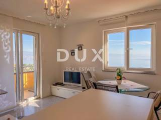 We present a duplex apartment in a quiet location in the immediate vicinity of the sea and Opatija. It is a duplex space with 3 bedrooms, 86m2 in size, with a sea view. The apartment has the following layout: First floor: hallway, bedroom, bathroom, living room with kitchen and dining room and balcony. Each space is well lit, and the living room offers a panoramic sea view from the south and east sides. Second floor: Two bedrooms, storage room, en suite bathroom with shower. The apartment is being sold fully furnished, equipped with really high-quality furniture that has hardly been used. The space looks impeccably new, which has actually been used as a summer tourist rental for the last two years. The apartment is located in a building with a total of 6 apartments in a dead-end street surrounded by greenery and panoramic sea views. The building is newly built and offers each tenant two parking spaces. Location: the drive to the sea takes two minutes, and the walk downhill takes 12 minutes. The distance to the sea is 650 meters as the crow flies. The drive to the center of Lovran takes 3-4 minutes. The property is 10 minutes away from Opatija by car. The building generally has styrofoam insulation, fantastic for winter and warm summers. A great opportunity for people looking for a larger apartment near the sea.