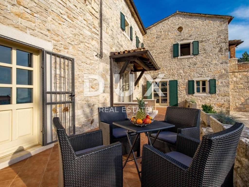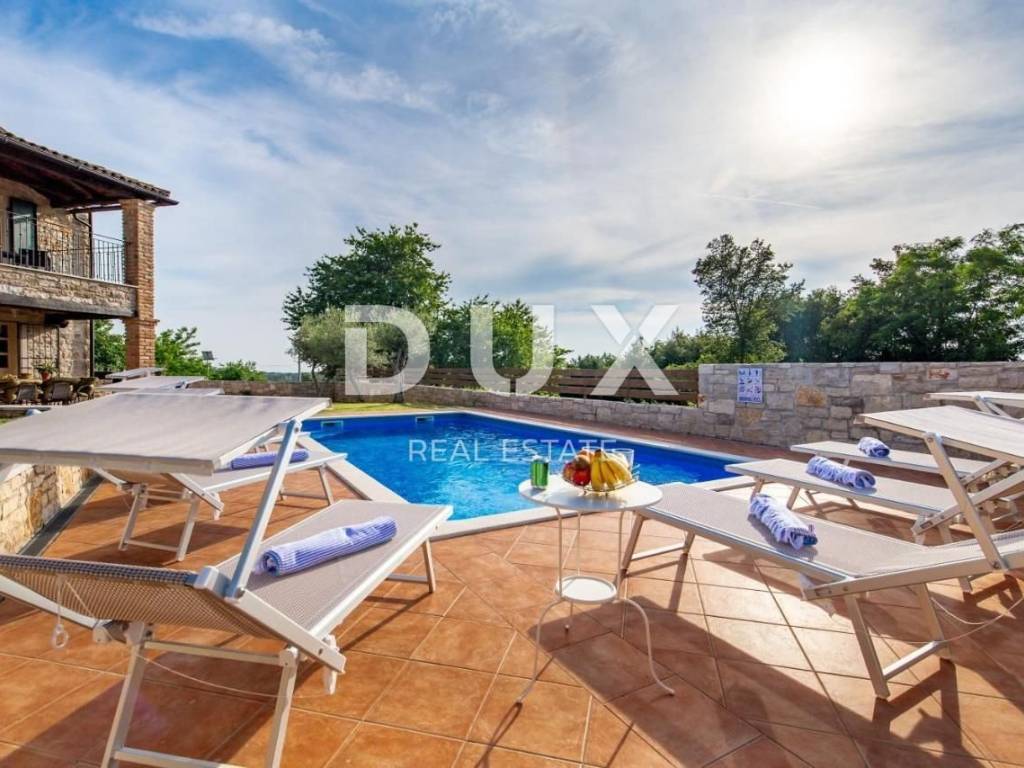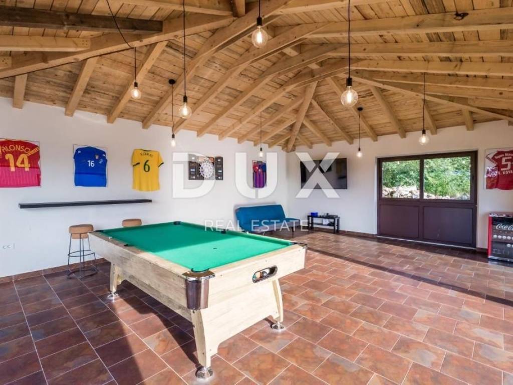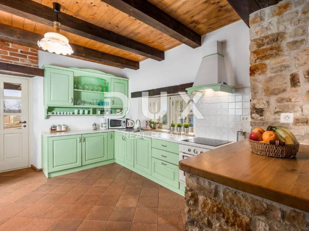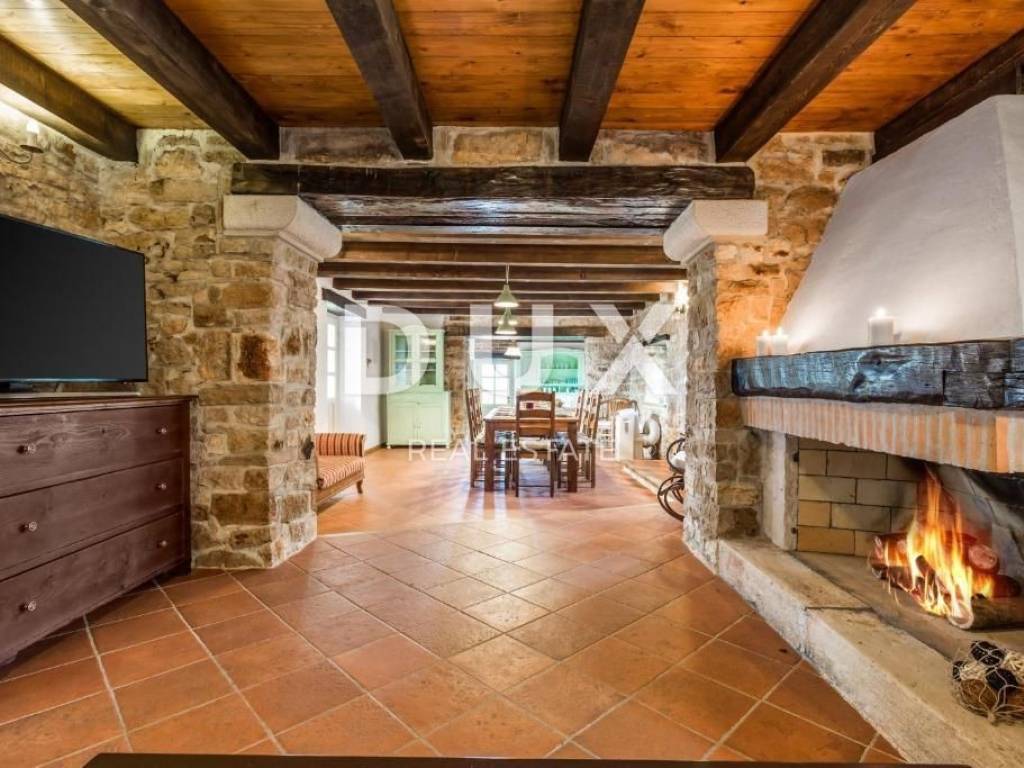 A typical Istrian stone house with a living area of 300m2 is for sale on a fully landscaped and fenced garden of 700 m2, on which there is also a 32 m2 swimming pool with a sunbathing area. The house has private parking and a separate air-conditioned house for socializing with a billiard table, table tennis, TV and seating.