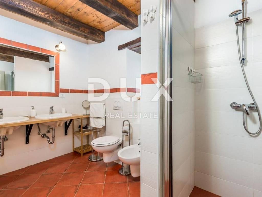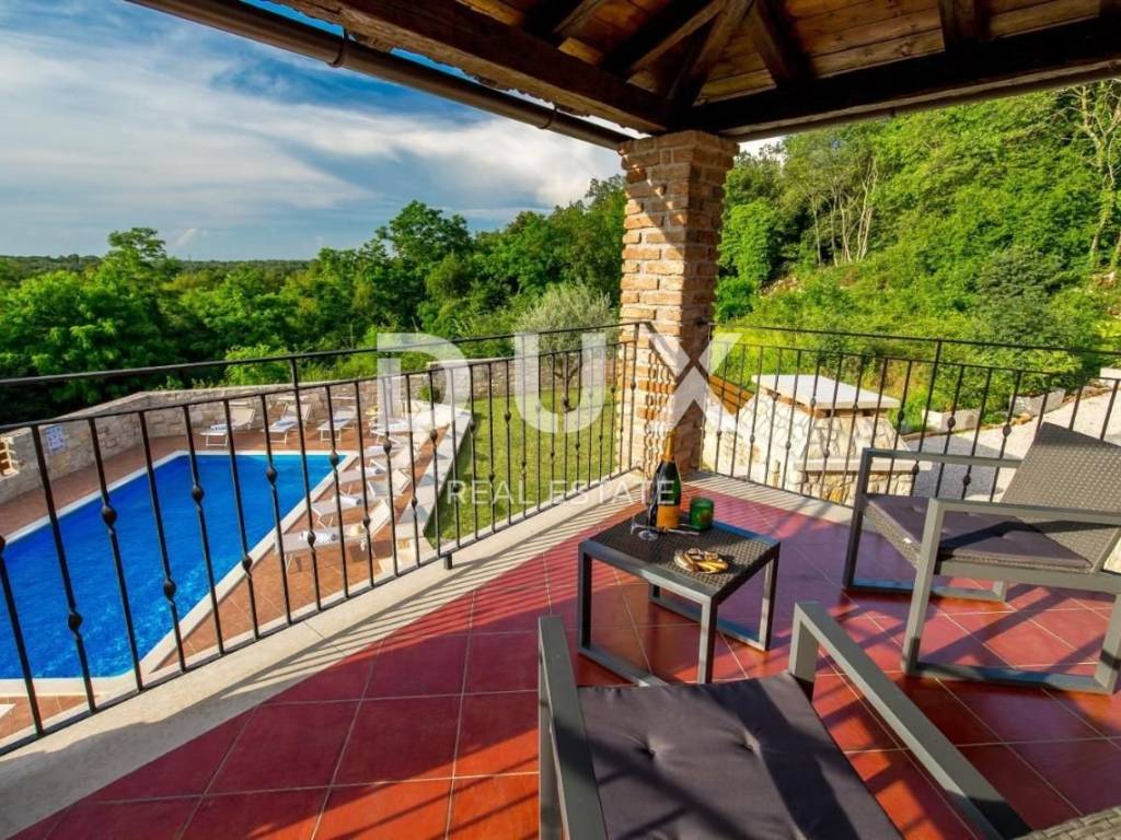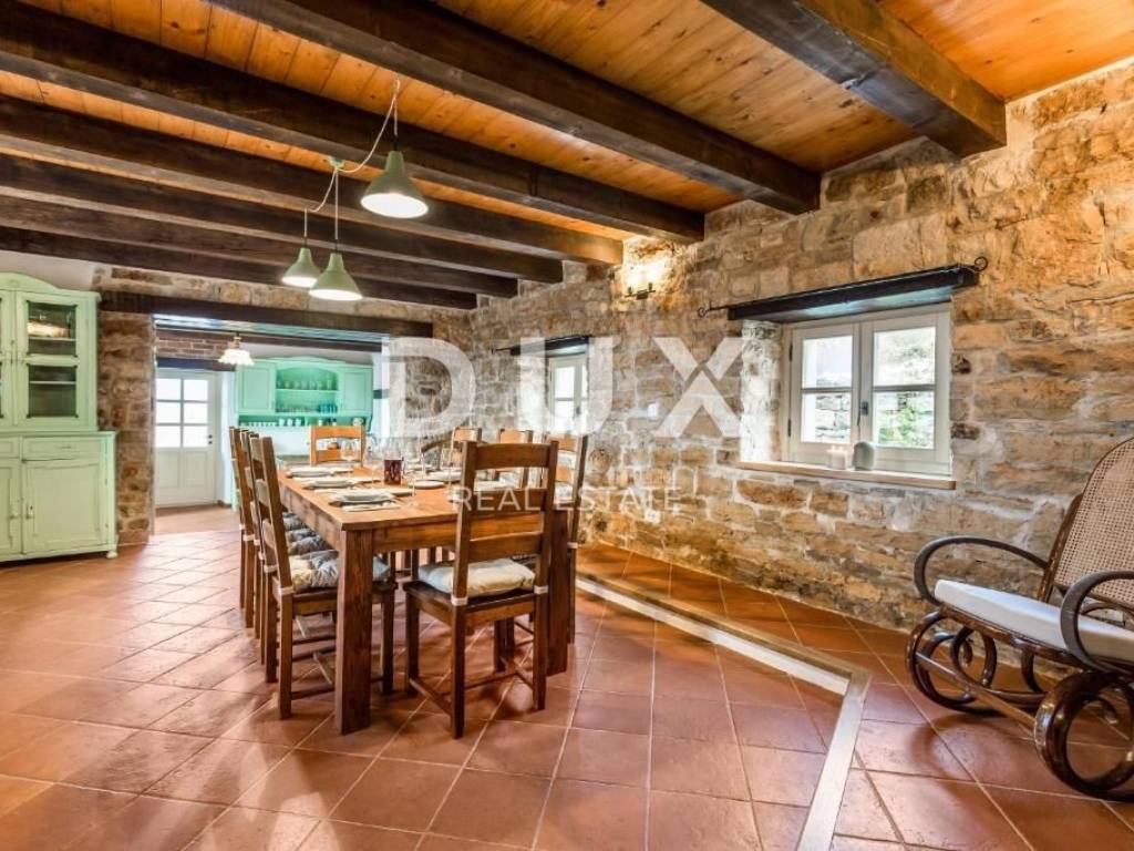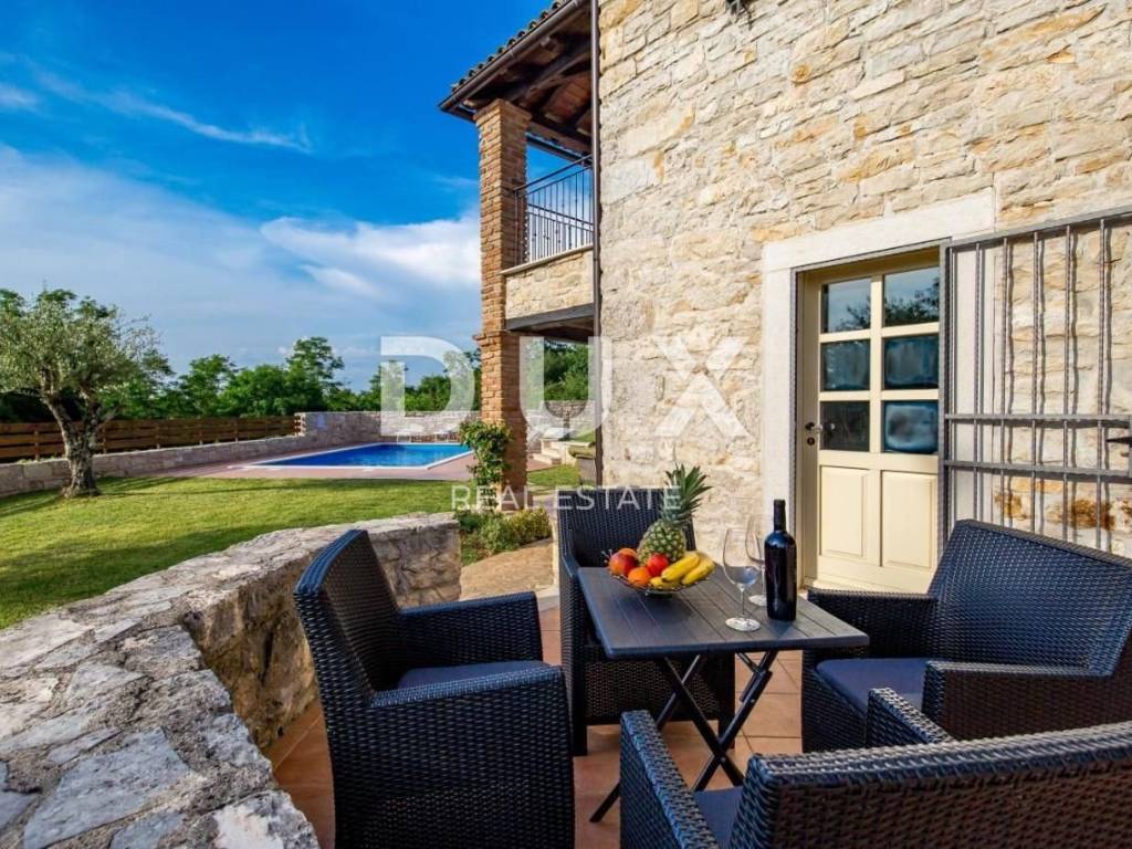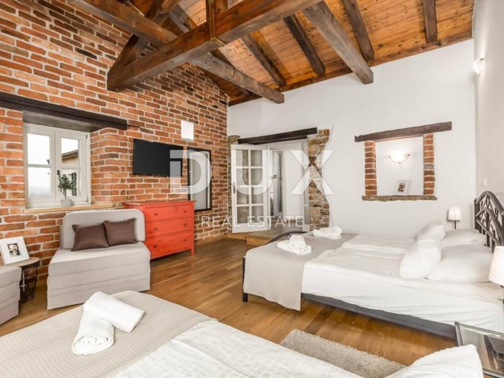 A typical Istrian stone house with a living area of 300m2 is for sale on a fully landscaped and fenced garden of 700 m2, on which there is also a 32 m2 swimming pool with a sunbathing area. The house has private parking and a separate air-conditioned house for socializing with a billiard table, table tennis, TV and seating.