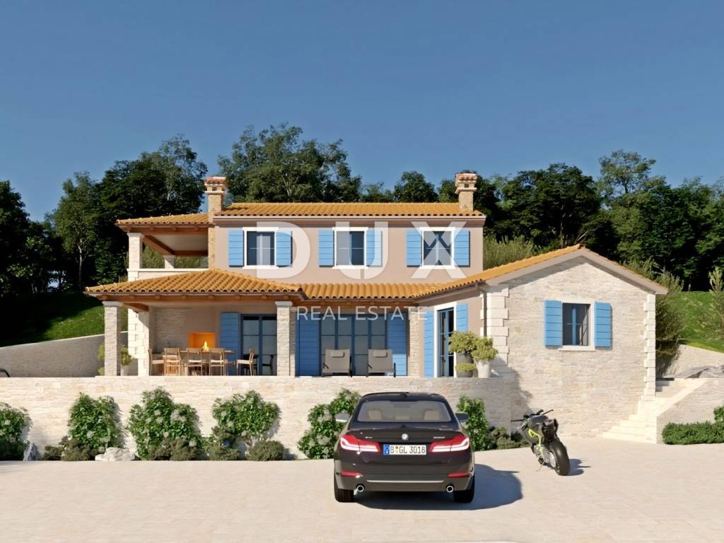The picturesque Vižinada, a municipality over 1000 years old, is located in the northwest of Istria on a hill on the edge of the Mirna River valley, at 257 meters above sea level and has 27 settlements under its auspices. Vižinada is full of indescribable peace but also life, energy, hedonism and gastronomy, with a view so imposing that it is an eternal inspiration whose beauty is best evidenced by the fact that it has often served as a backdrop for famous world films. The municipality of Vižinada, a municipality with one of the most beautiful views in Istria, is also considered one of the most wine-growing regions in the Republic of Croatia, with more than a million vines that, due to the quality of the soil, produce world-award-winning wines with special aromas and flavors. This fairy-tale municipality, which has become synonymous with gastronomy and top winemakers and oil mills, delights with its rich past, cultural heritage and coexistence of man and nature. Vižinada and its inhabitants seamlessly combine a rich past and magnificent nature with the demands of the modern age. On the edge of this picturesque place, in harmony with gently green terraces of vineyards and olive groves and lush forest hills, a Mediterranean house with a swimming pool and panoramic views is for sale. It is immersed in peace, quiet and the charm of nature in a location that exudes tranquility and tradition, from which unforgettable views of the enchanting Motovun and the surrounding area are offered. The property represents a harmony of space, needs, functions, construction and beauty and is characterized by a combination of traditional and modern, quality of construction and spatial organization of the interior. The comfortable house, partially clad in stone, fits into the settlement and landscape in terms of form and color and extends over two floors of a functional layout; ground floor and first floor. The ground floor consists of a kitchen, dining room and living room with access to a covered terrace, a bedroom with a private bathroom, a guest toilet, technical rooms and storage. The first floor consists of a hallway, two bedrooms with private bathrooms and a covered terrace. The fenced garden is full of greenery and the perfect harmony is rounded off by a swimming pool with a sunbathing area. The exceptional location and spatial organization of the interior and exterior of this property provide an opportunity for a comfortable family life or an investment in a tourist rental business.