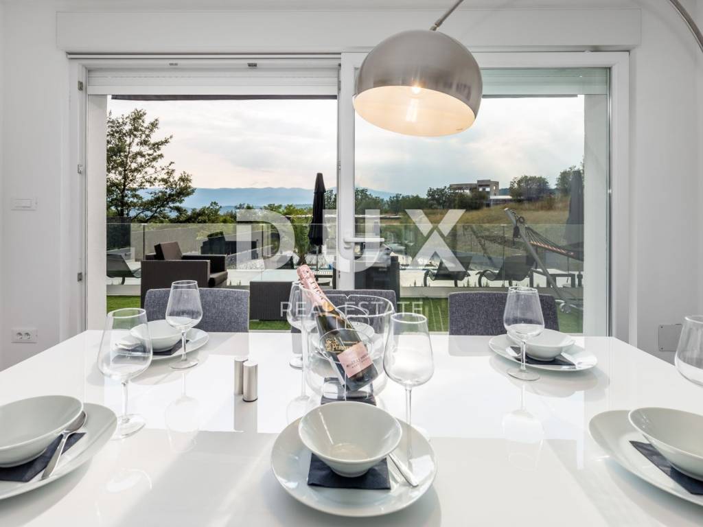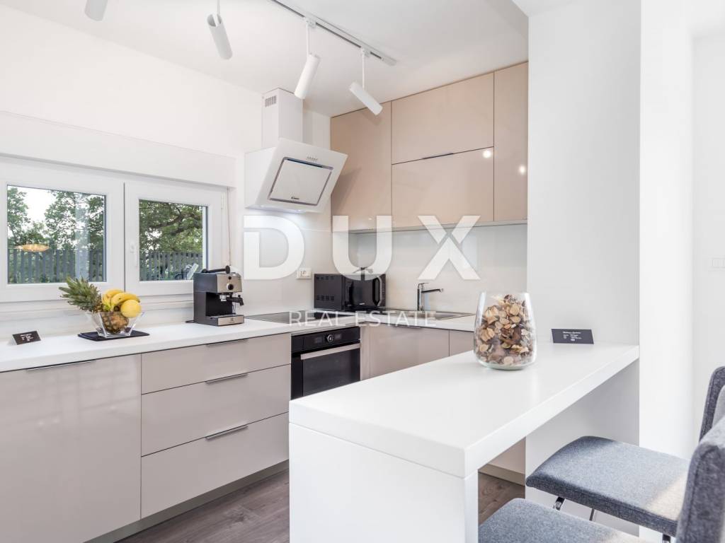 Apartment for rent, luxuriously furnished in a quiet location, 85 m2. Building with 8 apartments with associated parking and beautifully landscaped surroundings with a swimming pool and a large covered terrace. Apartment content: - very long beds (2m) - coffee/tea maker - air conditioning - iron and ironing board - equipped kitchen with all appliances - washing machine - streaming services (Netflix) - flat screen TV - cable channels - balcony - bathrooms with washing machine Building information: - Outdoor heated pool - Lounge bar with associated furniture - Video surveillance - Sea view - Surrounded by nature The apartments are fully luxuriously furnished according to the 5-star category and under warranty and size 75m2 - 150m2; - Each room has its own balcony/terrace - 1 min. driving to the junction with the city bypass