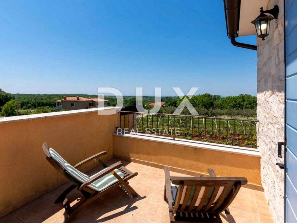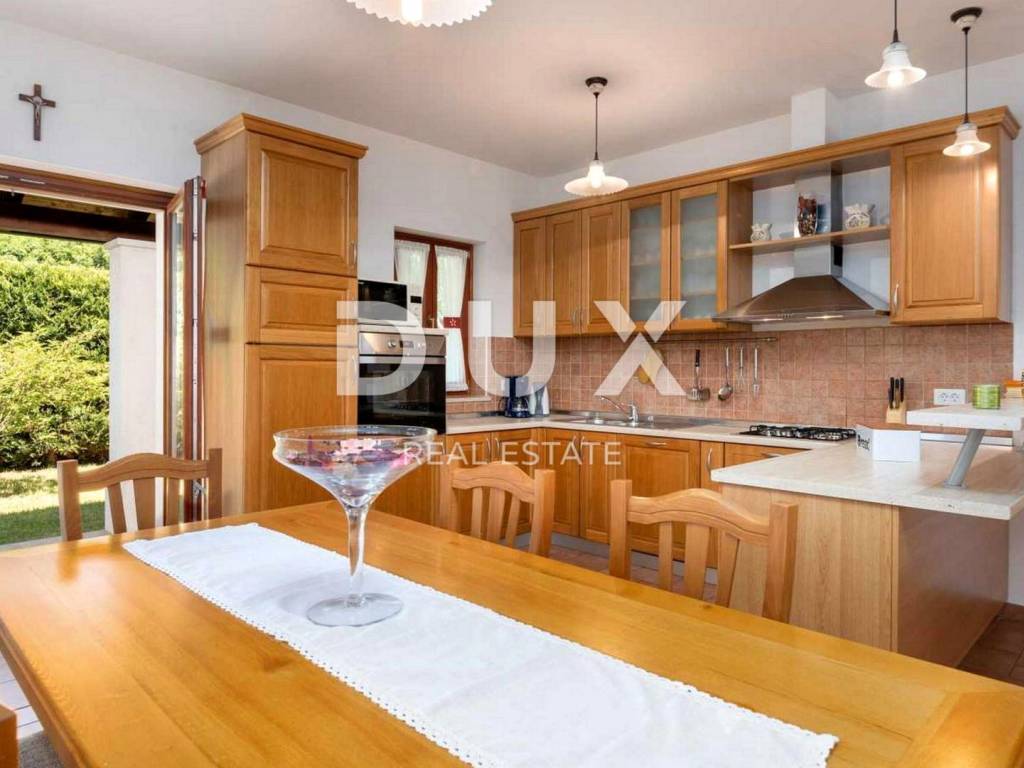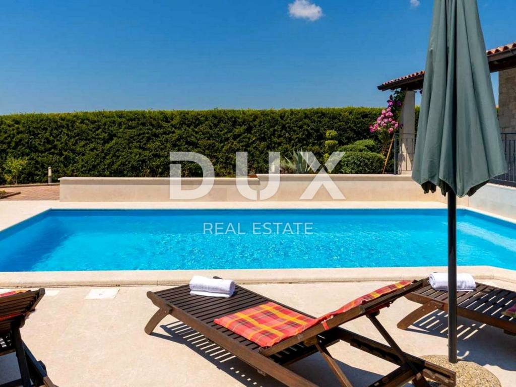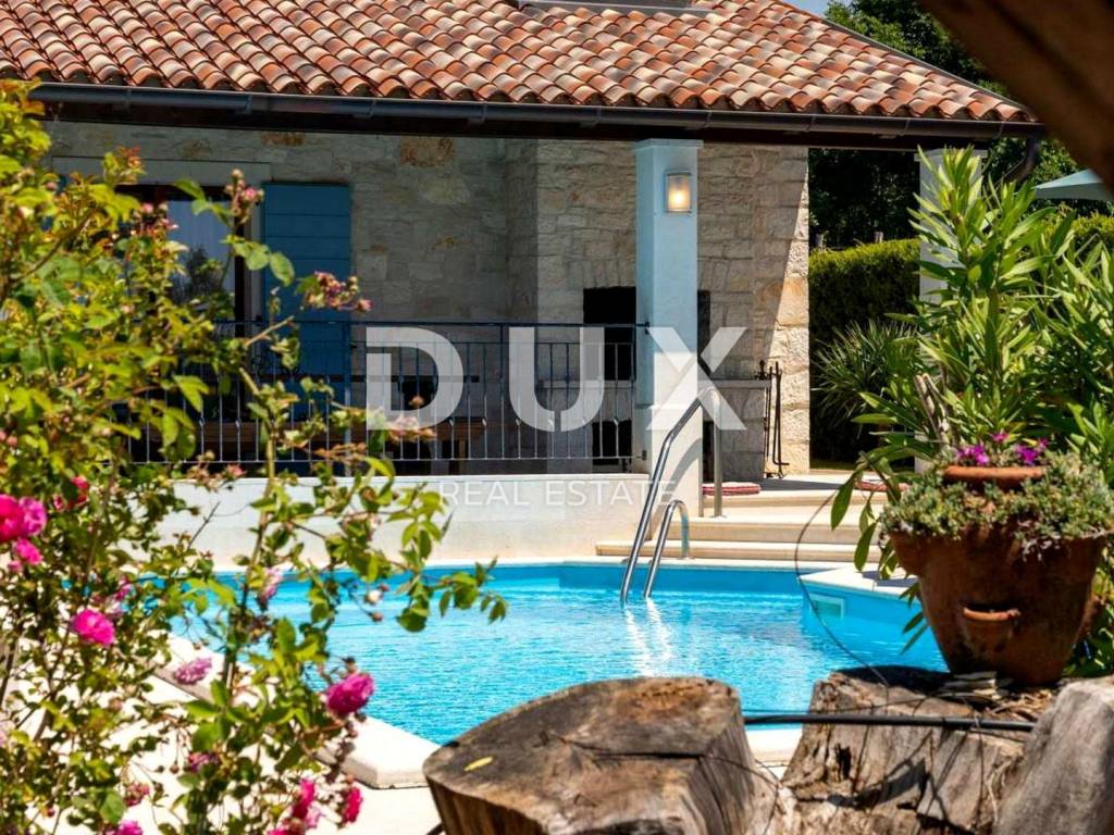 The town, once surrounded by ramparts and towers, is today a place with a very pronounced charm, where tradition and history are proudly displayed. Tinjan is located above the evergreen Draga, whose beauty we can enjoy from the Tinjan viewpoint under the old ladonja. The municipality of Tinjan covers an area of 53.94 km and there are 8 settlements within the municipality. Surrounded by greenery in a peaceful neighborhood near Tinjan, a rural house with a swimming pool is for sale. The microlocation offers an authentic experience of a small Istrian town, intimacy, relief from every hectic effort and a break from noise, and at the same time close enough to the dynamic cities of Istria with a range of amenities. In addition to the convenient location, the property is also characterized by the quality of construction, which guarantees long-term satisfaction and quality of living. The house, partially clad in stone, is a perfect blend of traditional and modern and is designed as one residential unit that extends over two tastefully decorated and well-equipped floors. The ground floor of the house consists of an open-concept space that unites the kitchen, dining room and living room with access to a covered terrace with an open fireplace, bedrooms with en-suite bathrooms, a guest toilet and a boiler room. The first floor consists of two bedrooms with en-suite bathrooms and a hallway with access to a terrace with a panoramic view of the surroundings. The yard is decorated and fenced in an ambient and horticultural style and contains a 23 m swimming pool with a sunbathing area. The excellent location and spatial organization of the interior and exterior of this property provide an opportunity for a comfortable family life or an investment in a tourist rental business.