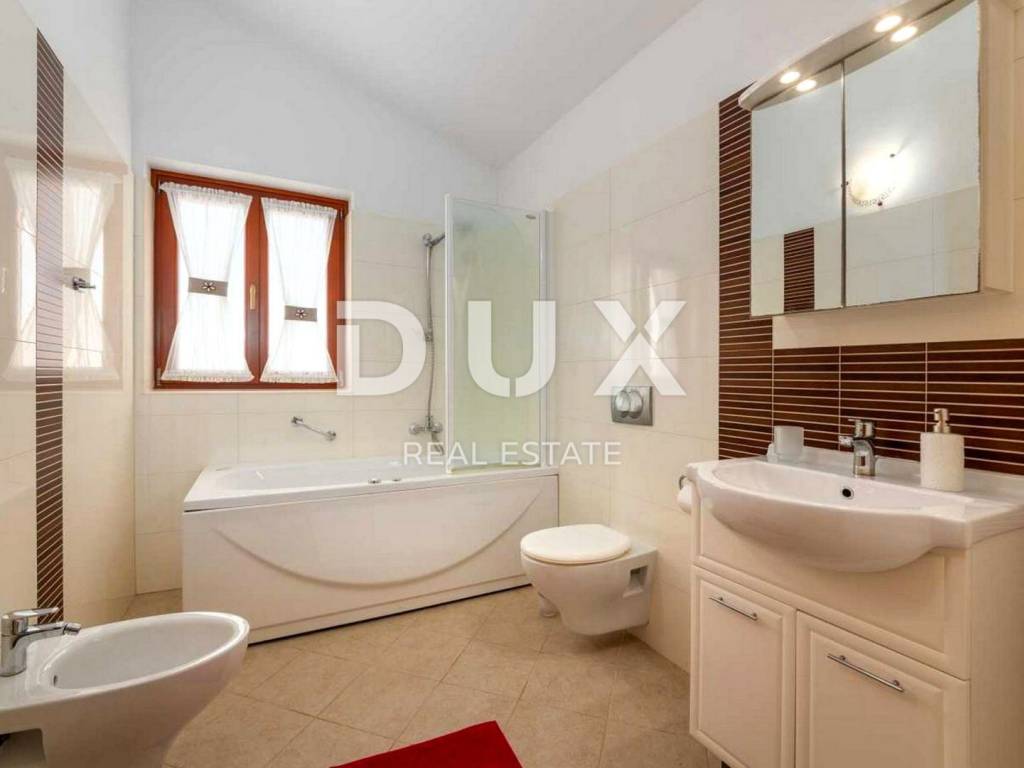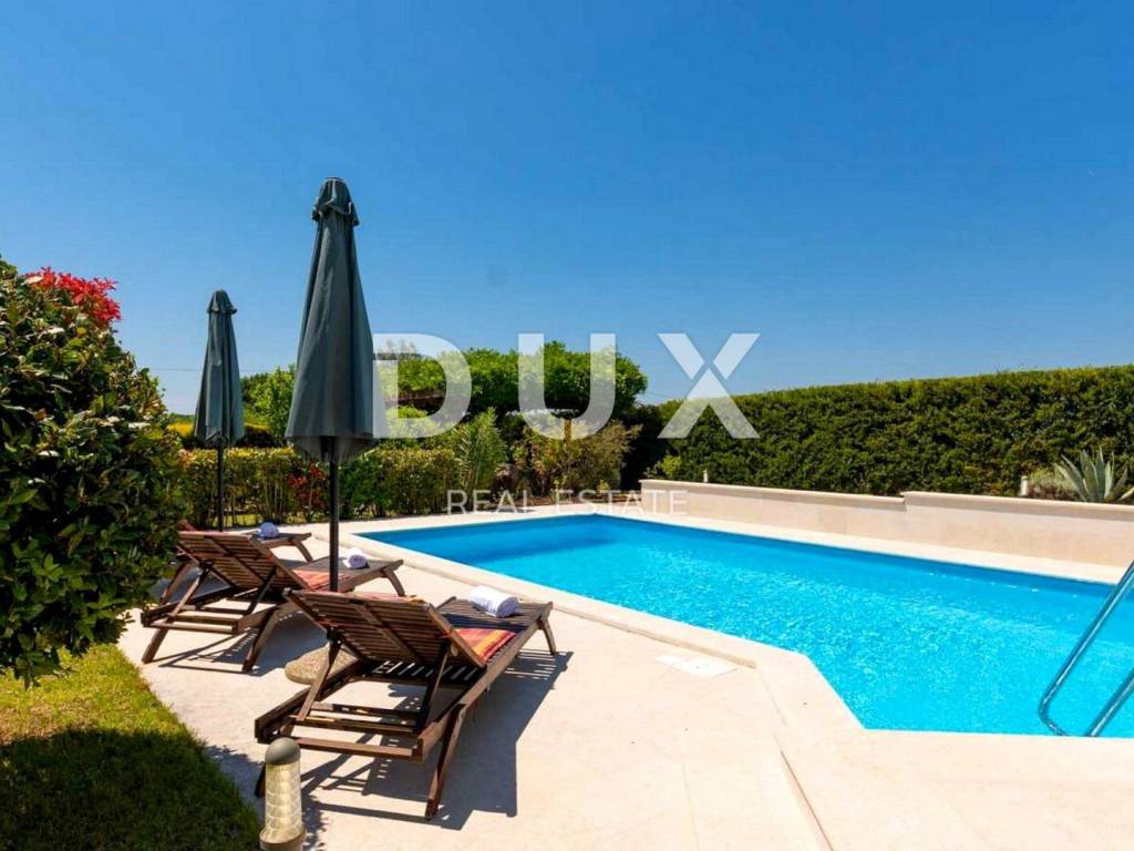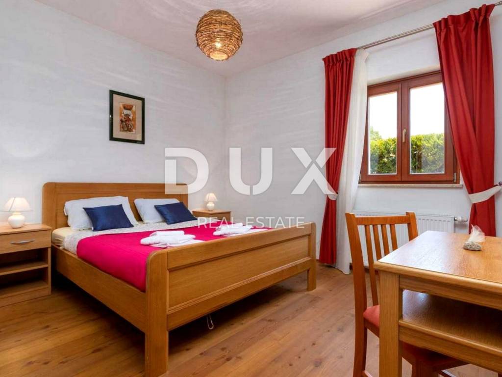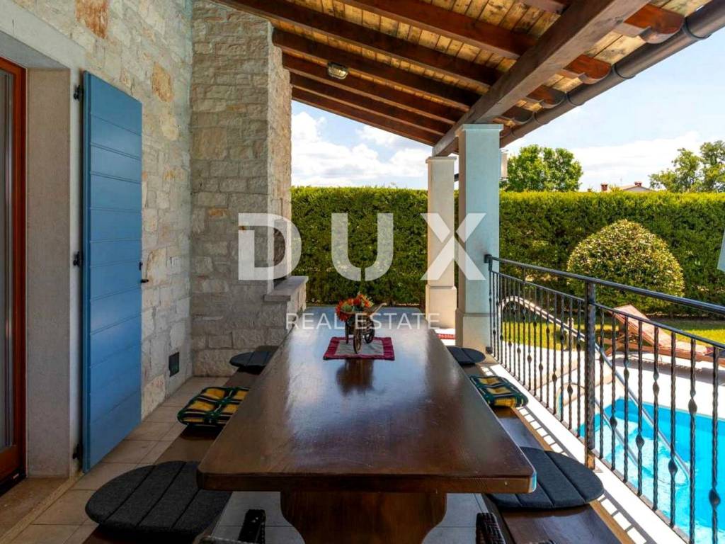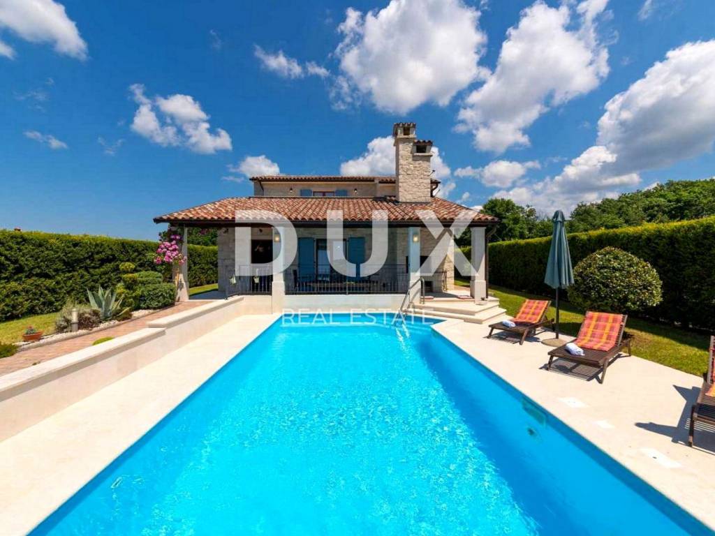 The town, once surrounded by ramparts and towers, is today a place with a very pronounced charm, where tradition and history are proudly displayed. Tinjan is located above the evergreen Draga, whose beauty we can enjoy from the Tinjan viewpoint under the old ladonja. The municipality of Tinjan covers an area of 53.94 km and there are 8 settlements within the municipality. Surrounded by greenery in a peaceful neighborhood near Tinjan, a rural house with a swimming pool is for sale. The microlocation offers an authentic experience of a small Istrian town, intimacy, relief from every hectic effort and a break from noise, and at the same time close enough to the dynamic cities of Istria with a range of amenities. In addition to the convenient location, the property is also characterized by the quality of construction, which guarantees long-term satisfaction and quality of living. The house, partially clad in stone, is a perfect blend of traditional and modern and is designed as one residential unit that extends over two tastefully decorated and well-equipped floors. The ground floor of the house consists of an open-concept space that unites the kitchen, dining room and living room with access to a covered terrace with an open fireplace, bedrooms with en-suite bathrooms, a guest toilet and a boiler room. The first floor consists of two bedrooms with en-suite bathrooms and a hallway with access to a terrace with a panoramic view of the surroundings. The yard is decorated and fenced in an ambient and horticultural style and contains a 23 m swimming pool with a sunbathing area. The excellent location and spatial organization of the interior and exterior of this property provide an opportunity for a comfortable family life or an investment in a tourist rental business.