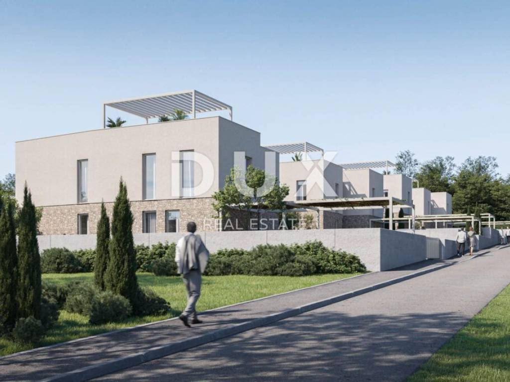 We offer a newer complex of buildings located in Karigador, only 290m from the landscaped and natural beaches. Thus, in the same complex, there is a two-story apartment with a roof terrace and a wonderful view of the sea and the sunset, with a total square footage of 108.20m2 and a 112.50m2 roof terrace. The apartment almost functions as a semi-detached house. SPACE ORGANIZATION: The apartment consists of 220.70m2 (108.20m2 space + 112.50m2 roof terrace). At the entrance to the apartment, there is a corridor that separates the private space from the space for everyday life, and there is also a space for a wardrobe. In the living area, there is a spacious living room with a dining room and a kitchen in one larger open and airy space, from which there is a direct exit to the outdoor covered terrace of 16.75 m2. In a slightly more private part of the apartment, there are 4 bedrooms, 3 of which are more spacious and one is smaller. The apartment also has 2 bathrooms. *Roof = 112.50m2* The roof terrace is accessed by a further staircase, with a wonderful view of the sea and the rest of the settlement, the same area can be arranged according to the wishes of the future owners. Covered parking for two cars has also been placed in the garden. The price of parking is included in the price. ADDITIONAL INFORMATION: * All apartments are equipped with air conditioners for cooling and heating. only 290m from natural beaches * There is a possibility of setting up a swimming pool later * The price shown is for legal entities, the amount of VAT is added to the price for private individuals If you need additional information or have any questions, please feel free to contact us!