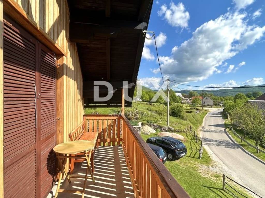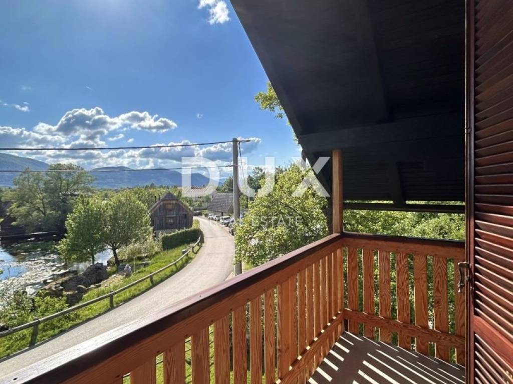 A beautiful house of 100m2 with a view of the Gacka river is for sale, i.e. only 20m from it, i.e. Majerovo vril. The house consists of a ground floor where there is a dining room and a kitchen and a bathroom. On the first floor of the house there is a storage room, a bedroom, a kitchen and a living room, as well as a balcony with a wonderful view of the river Gacka, or Mlinice. The house has two entrances. In addition to the above, there is also a garden that extends to approx. 3500m2 and is located on a gentle slope with an unforgettable view. In addition to space for enjoying nature, this part represents a great potential for investing in accommodation for tourist purposes. The Gacka River is considered the second cleanest river in Europe, and it has over thirty beautiful springs that have been declared a natural monument. Along with Tonković vrilo and Klanac, Majerovo vrilo is one of the three big sources of the Gacka river, and it is also the most visited, and it is located in the small town of Sinac, next to Otočac.