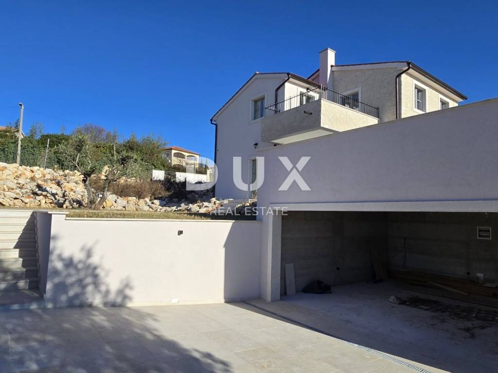 On a plot of 1171 m2, there is a new building with a swimming pool and a garage with a living and usable area of 303.10 m2, including a garage space. The net living area of the house is 210.51 m2, the garage has a usable area of 31.35 m2. In addition, there is a usable area of about 61.24 m2. In addition to various balconies and covered terraces, the villa offers a sunbathing area of an additional 92.59 m2 around an almost 10 m long pool, which is designed as a real overflow pool facing the sea.
