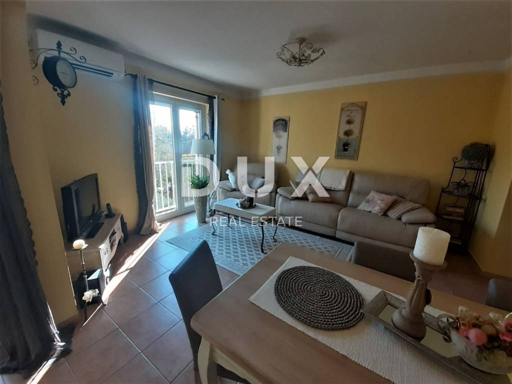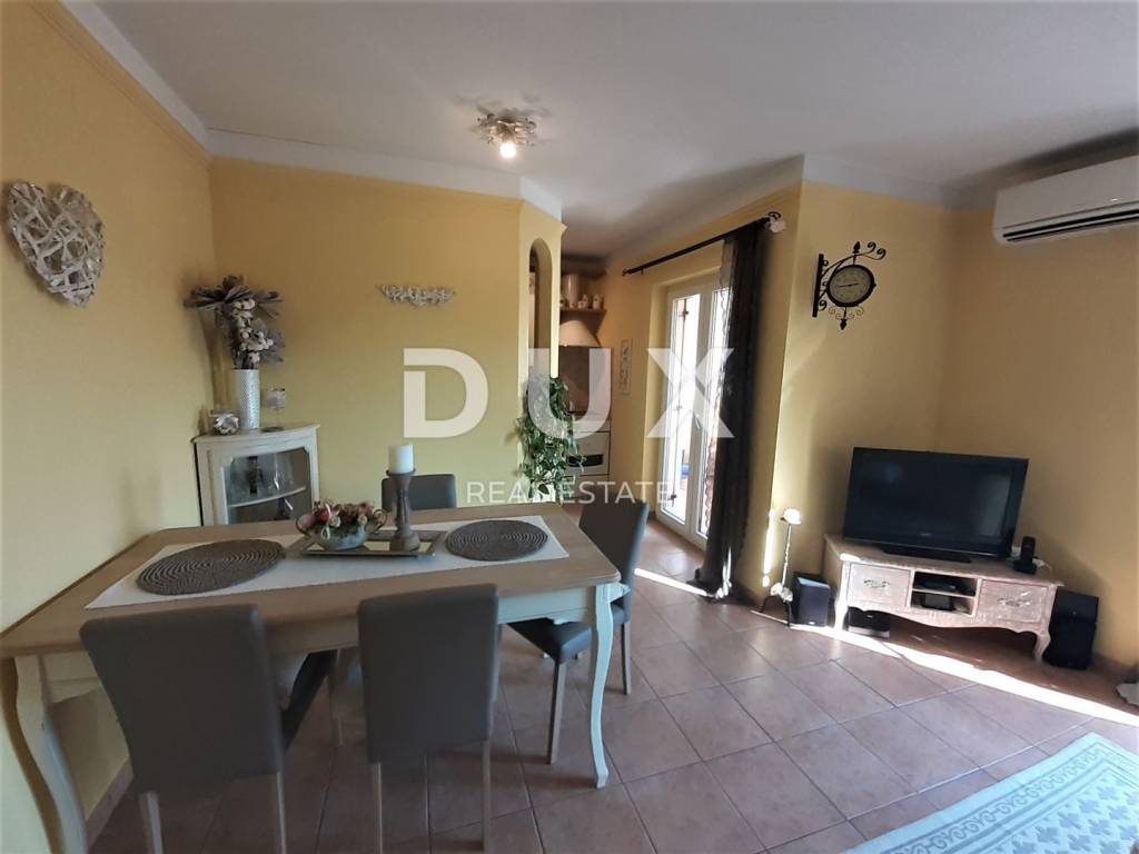 Novigrad is located on the west coast of the Istrian peninsula and stands out among the many Istrian towns for its unique natural beauty, rich cultural heritage and the big heart of its hosts. It is also a city that boasts one of the cleanest seas in this part of the Mediterranean. The Novigrad riviera stretches from Dajla to the mouth of the Mirna river, and is adorned with an indented, low and accessible coast, rocky and pebble beaches. Novigrad hotels are also located there, which have organized sports fields and a variety of catering options in their vicinity. Near this tourist spot, there is an apartment for sale on the ground floor of a residential building with a total area of 61.83 m2. It consists of a hallway, two bedrooms, a bathroom and a kitchen with a dining room and a living room. The apartment is oriented to the south and has enough light throughout the day. The balcony has a view of the greenery and is protected from the wind. The heating is electric with the help of an air conditioner. The apartment is decorated beautifully, harmoniously and with taste, and every corner is used functionally. Ideal for living with a small family or for renting.