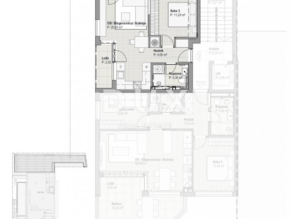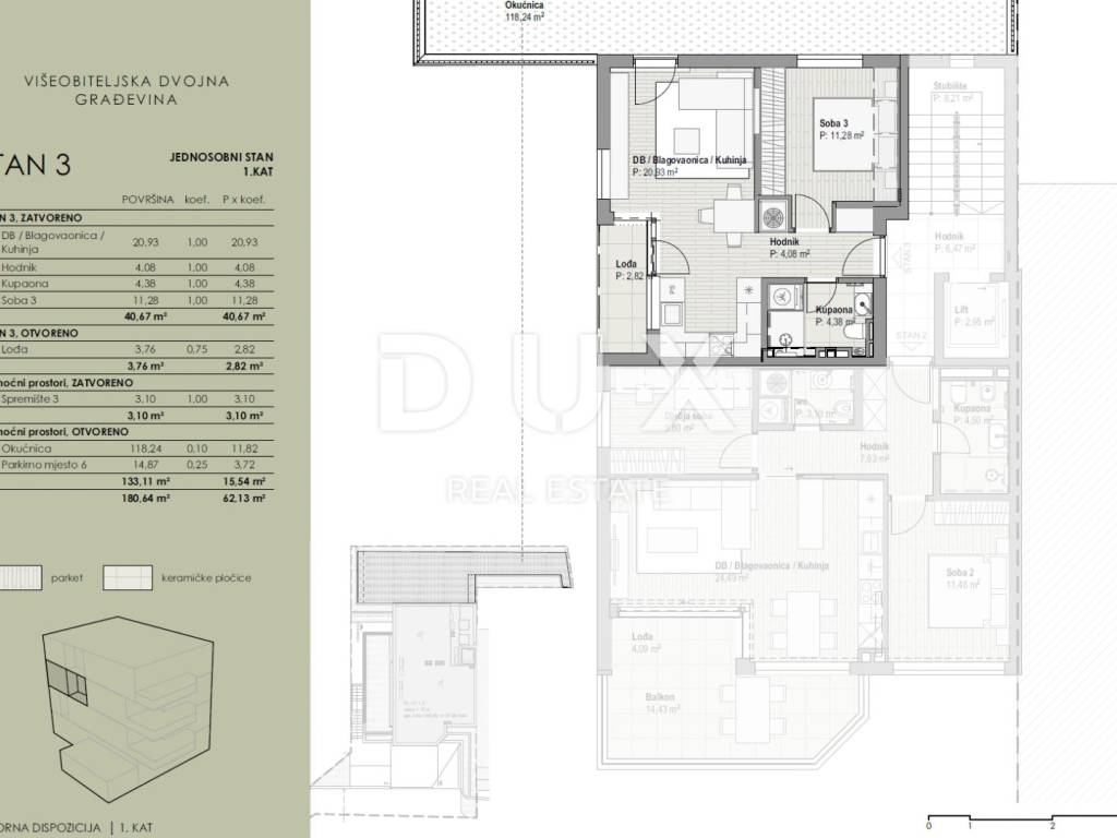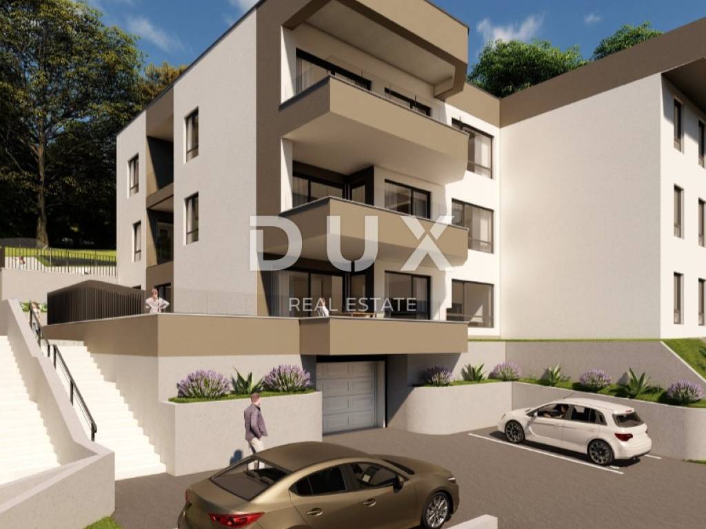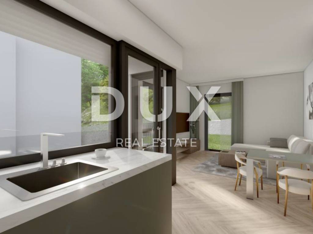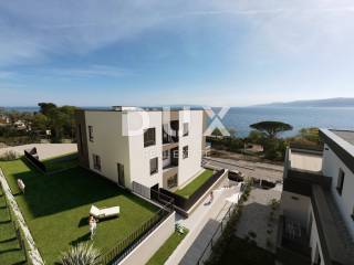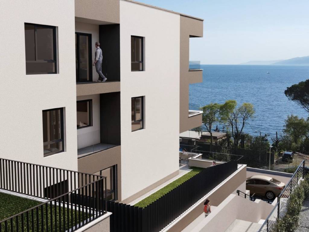 APARTMENT 3 - One-room apartment, located in the zone of the 1st floor with a loggia and its own garden. Auxiliary spaces consist of a separate storage room and 1 open parking space. IDEA OF THE PROJECT: The project represents a vision of housing construction that focuses on modern solutions and quality of life in apartments. DESCRIPTION AND ORGANIZATION: The entire building on its 4 floors accommodates four apartments of different square footage and a basement with garage space. For parking purposes, the majority of parking spaces are located inside the basement floor, which will have been prepared for charging electric cars, i.e. channels for electricity supply have been installed. If the owner of the apartment needs a charging station, all he has to do is run the cables and get the power for electricity. In addition to parking in the basement or on the lot, each apartment is assigned its own storage room. The main entrance to the building is located on the ground floor, which is reached by an external staircase. The apartments are accessed via a communication vertical within which the staircase and elevator are closed. When designing, the investors were guided by the idea that all apartments should have living spaces facing south or west with the possibility of exiting to the outside, to give the apartments maximum privacy and the possibility of a view. They organized the apartments so that the spaces are used as well as possible and suitable for storing wardrobes or other things. Each apartment has a place for a wardrobe in the entrance area, in addition to the spacious wardrobes in all bedrooms. LOCATION: The plot is located in Costabella - Bivio, which is a very attractive location due to its location in relation to Rijeka, Opatija, the proximity of the sea, the ring road and other facilities. The facility is located in the western part of the city of Rijeka. The immediate proximity to the sea within walking distance offers the opportunity to make the most of the summer season, fresh air and a panoramic view of the Kvarner Bay. The location is very well connected with expressways and highways to other parts of the city, Istria, the rest of Croatia and surrounding countries. To the west of the location is Opatija, accessible via the main road directly next to the enclosure. Opatija is famous for being a very famous tourist and therapeutic destination, which is also called "the pearl of the Adriatic coast". Social facilities such as kindergartens, schools, sports halls, and shops are located within a radius of 2 km. This property is 100 meters from the sea as the crow flies, or 1 minute on foot. A property from which you can literally walk to the sea and the beach in one minute! A UNIQUE PROPERTY DEFINITELY WORTH YOUR ATTENTION IN A GREAT LOCATION!!