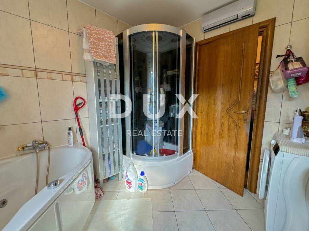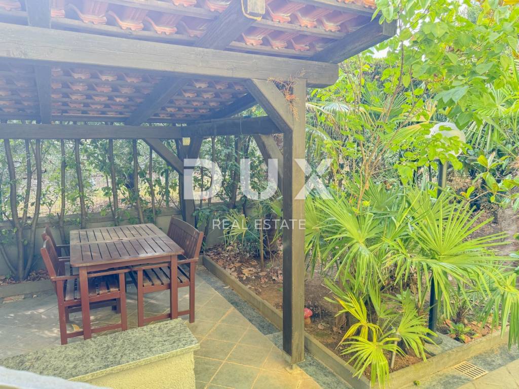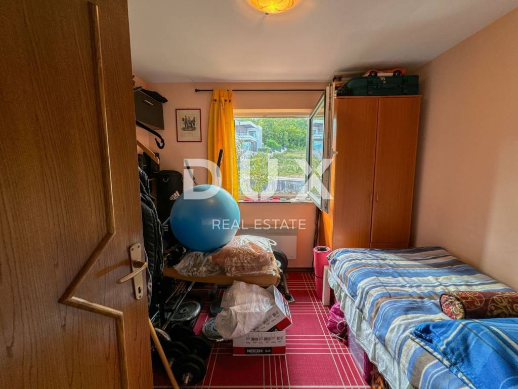 We mediate in the sale of an apartment with an area of 97m2, located in a prestigious location near Ičići beach and only a few minutes from Opatija. This spacious apartment is located in a newer building and extends over the entire first floor, with an additional floor in the attic that is ideal for storage. A spacious hallway leads to two comfortable bedrooms and a large bathroom with window, bidet, shower and bathtub. The central part of the apartment consists of an open living room with a kitchen and a dining room, where through large glass walls you can access the covered outdoor terrace with a beautiful, unobstructed view of the sea. At the entrance to the apartment there is an additional room of 3 m2 that serves as a storage room. The building is of recent construction, with facade insulation and shutters on the woodwork, which contributes to energy efficiency. Heating is air conditioning and electric radiators, but thanks to the quality construction, it is rarely needed. Around the house there is a rich garden with lots of greenery, and the common gazebo in the yard is ideal for relaxing and socializing with friends. The apartment has two outdoor parking spaces. The apartment is located in a quiet, residential area, ideal for a pleasant family life or as an investment for vacation. Ičići beach is only a 10-minute downhill walk or a 2-minute drive by car, which makes this property even more attractive. With a minimal renovation of the furniture, this apartment represents a superb opportunity to buy a spacious apartment in one of the most desirable locations around Opatija.