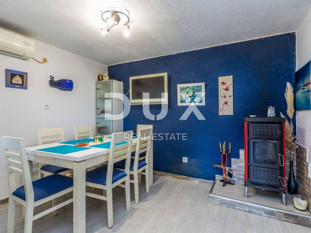 Detached house 150 m2 consists of basement and ground floor, each floor has its own entrance. The ground floor consists of an open space in which there is a living room and a kitchen with a dining area, two bedrooms, a bathroom and a storage room that can be converted into another room. The living room leads to a covered and stone-paved terrace, which offers space for socializing and relaxation, and in the extension there is a summer kitchen and barbecue, as well as a large spacious yard for outdoor activities. In the basement there is a living room with a kitchen and dining room, one bedroom, a bathroom, a storage room and a spacious terrace with a view of the landscaped garden. The house is fully equipped and furnished, it has PVC joinery, electric radiators and a wood stove that gives a special atmosphere in winter. It is located in a quiet place only 1500 m from the sea. It is suitable for a year-round stay as well as an excellent investment in tourism. On the eastern side of the island of Krk is the municipality of Dobrinj with the center of the same name. Dobrinj is located on a hill about 200 meters high and is one of the medieval castles that were centers of literacy in the past. For centuries, Dobrinjština was an extremely agricultural region. Animal husbandry and olive growing, as well as the exploitation of forest resources, were also represented. The place is also known for its colorful folk costumes, folklore events, sopela school (Krk's wind instrument) and traditional local cuisine. In this island center, autochthonous stone houses and narrow stone streets that are reminiscent of the past prevail. Not far from Dobrinje is the Biserujka cave, which delights with its beauty and interesting precipitated forms. It is the only cave on the island, of which there are more than 50, designed to receive visitors. According to legend, the cave was named Biserujka (pearl) after the treasure found in it, which belonged to local pirates.