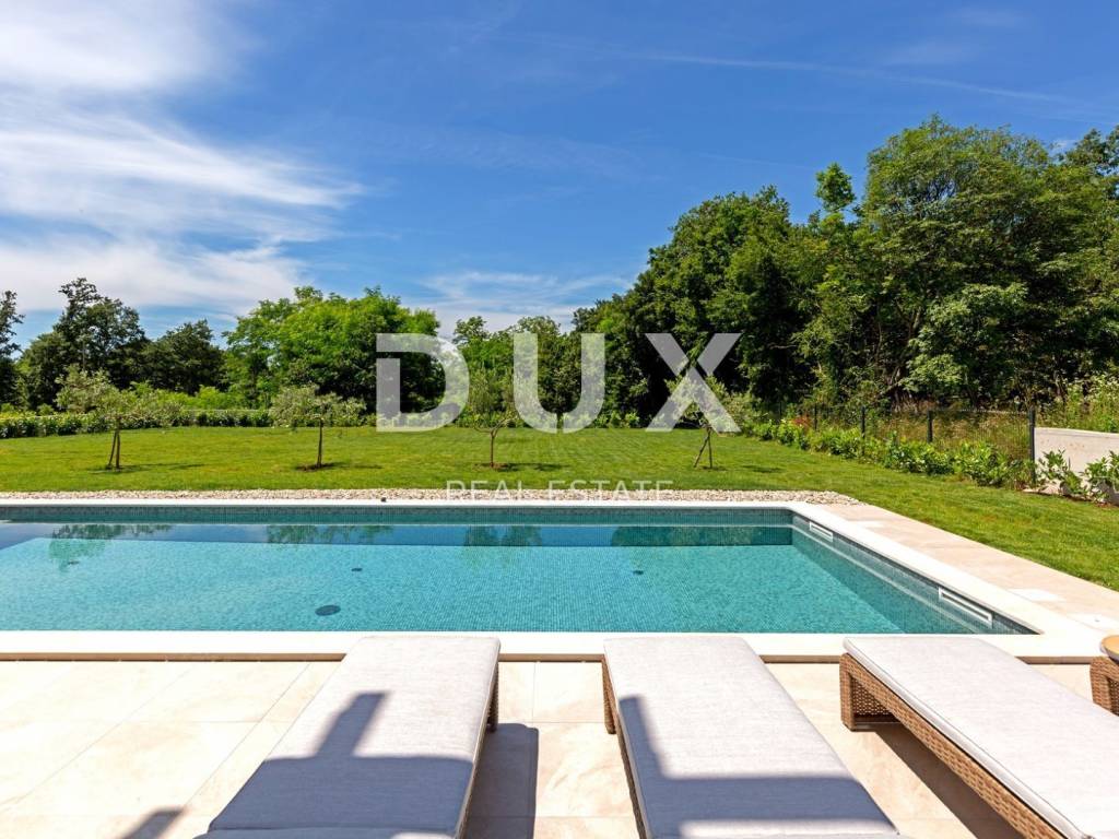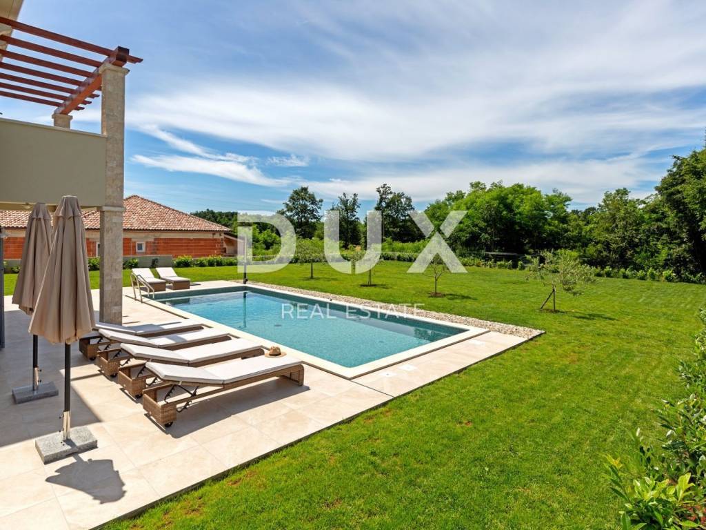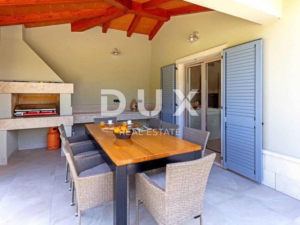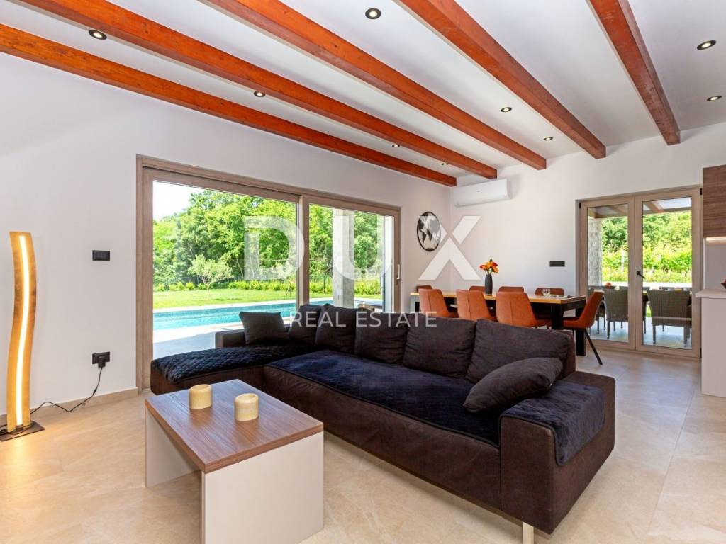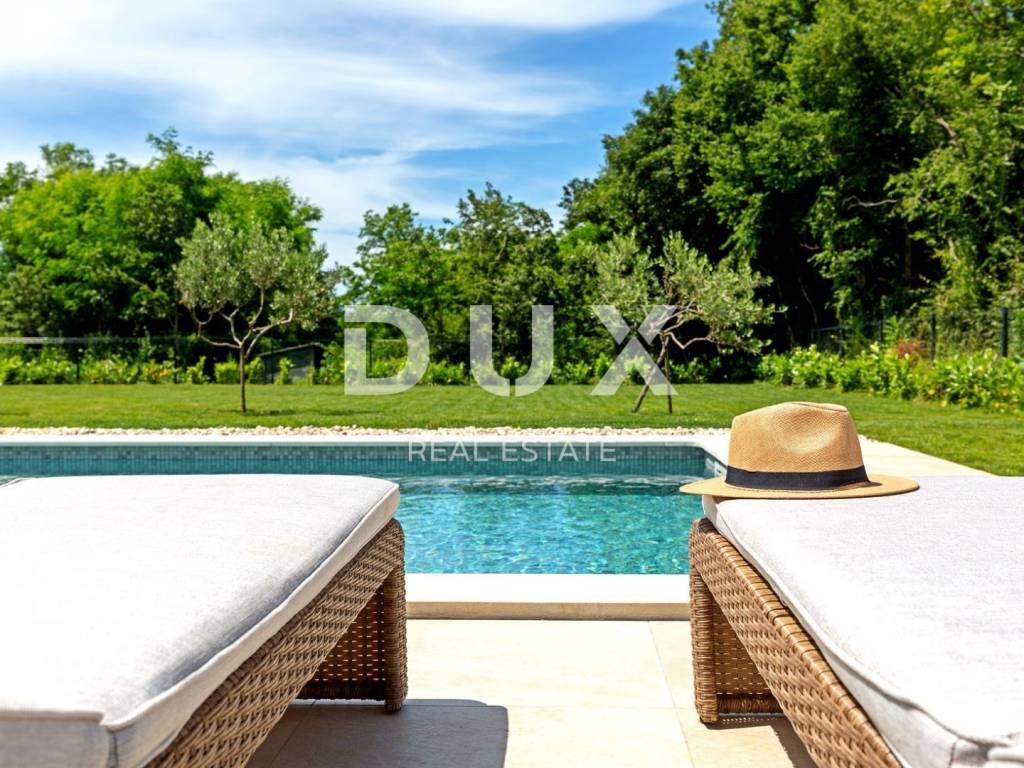 It is located in a gentle settlement, surrounded by nature, family houses and holiday homes, offering a perfect balance of rural surroundings and proximity to urban amenities. In addition to the location that provides complete comfort and peace, the property is also distinguished by the quality of construction, which guarantees long-term satisfaction and quality of housing. It was conceived as one residential unit that extends over two floors with an airy, natural light-filled interior that exudes elegance. The ground floor consists of an open concept space that unites the living room, dining room and kitchen with access to a covered terrace containing a summer kitchen. The floor plan of the ground floor is complemented by a bedroom, a bathroom and a room for equipment/storage. The first floor consists of two bedrooms with their own bathrooms and access to a terrace covered with a pergola. The yard is landscaped and horticulturally decorated, and the elegantly integrated swimming pool of 40 m with a sun deck provides complete harmony.
