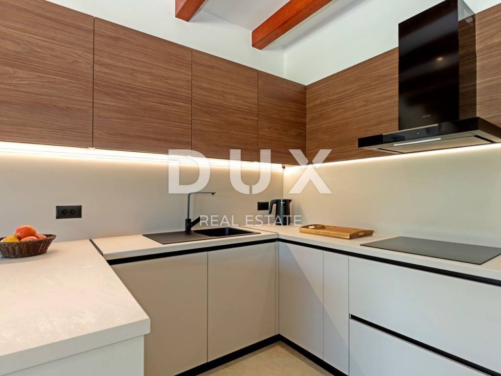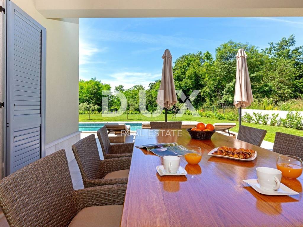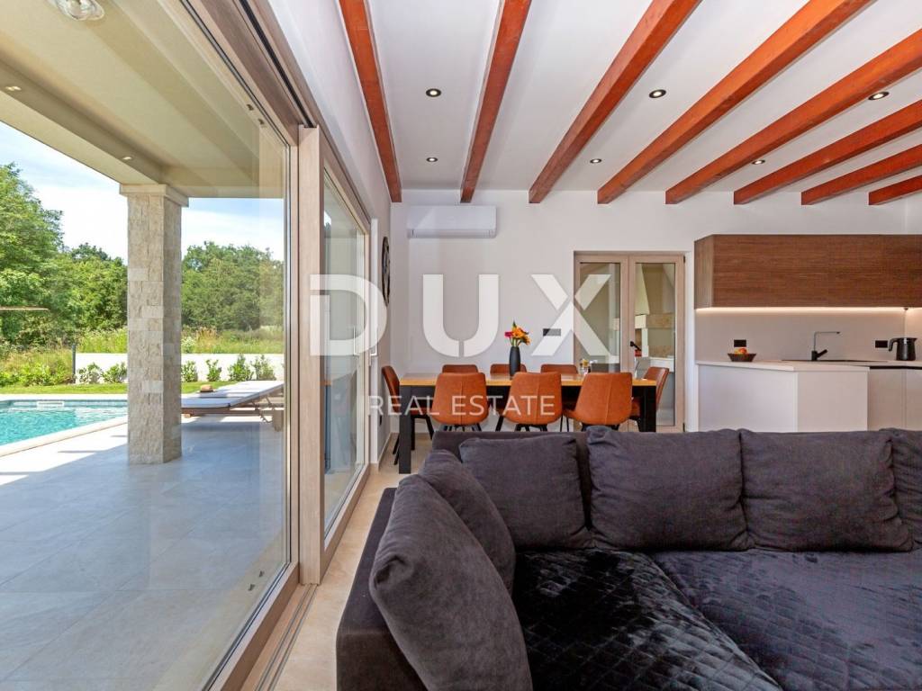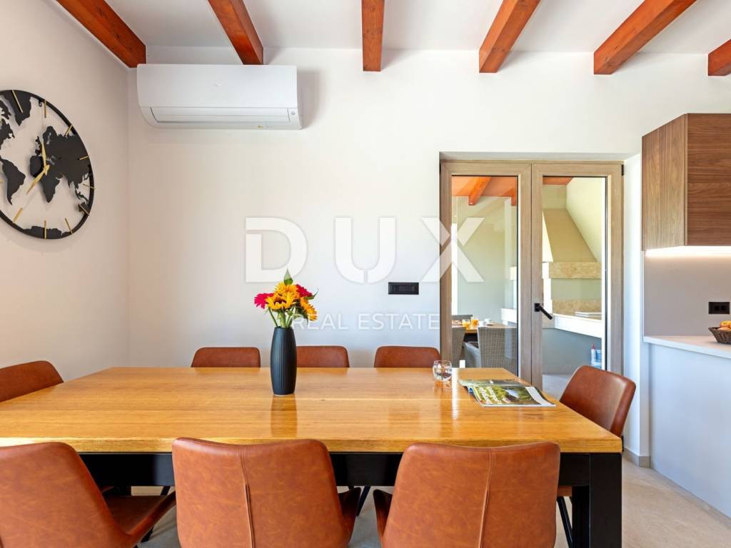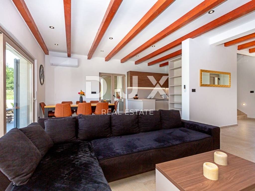 It is located in a gentle settlement, surrounded by nature, family houses and holiday homes, offering a perfect balance of rural surroundings and proximity to urban amenities. In addition to the location that provides complete comfort and peace, the property is also distinguished by the quality of construction, which guarantees long-term satisfaction and quality of housing. It was conceived as one residential unit that extends over two floors with an airy, natural light-filled interior that exudes elegance. The ground floor consists of an open concept space that unites the living room, dining room and kitchen with access to a covered terrace containing a summer kitchen. The floor plan of the ground floor is complemented by a bedroom, a bathroom and a room for equipment/storage. The first floor consists of two bedrooms with their own bathrooms and access to a terrace covered with a pergola. The yard is landscaped and horticulturally decorated, and the elegantly integrated swimming pool of 40 m with a sun deck provides complete harmony.