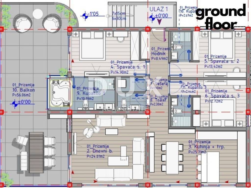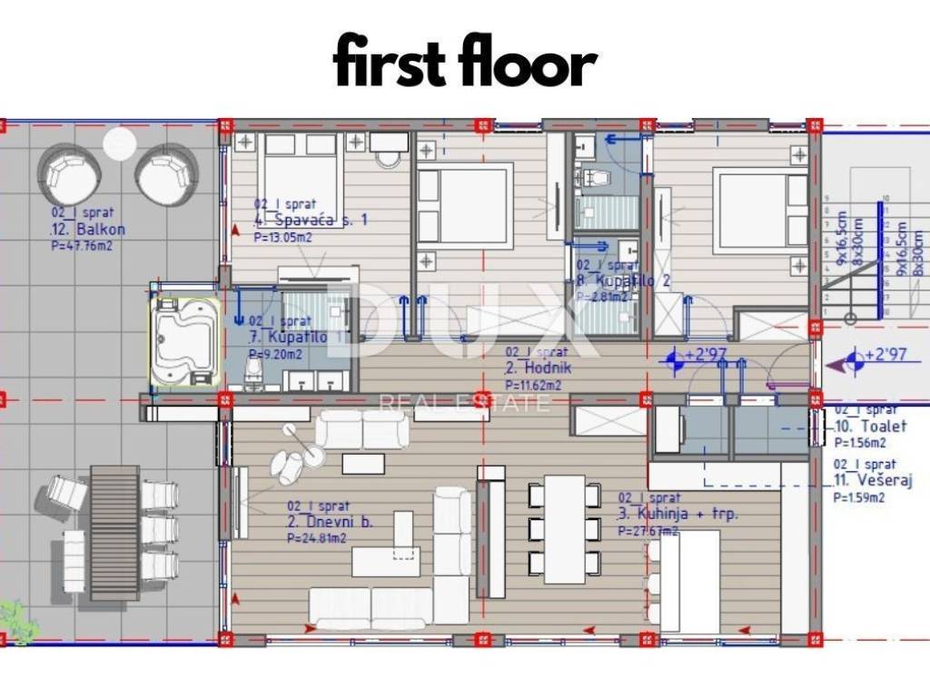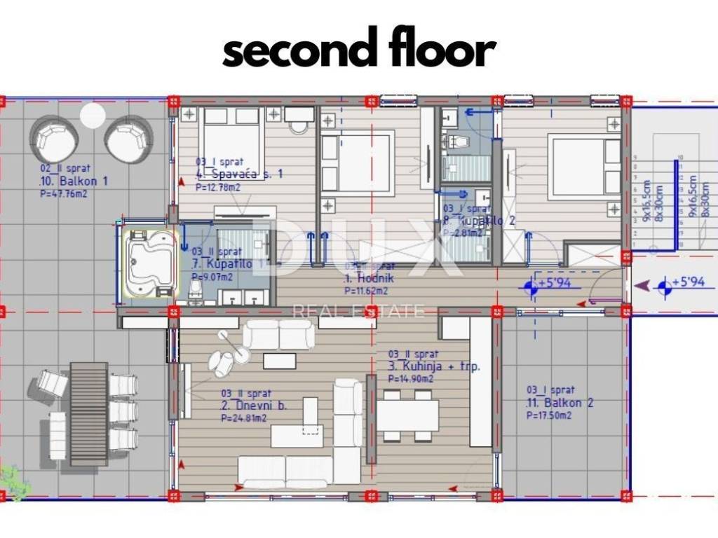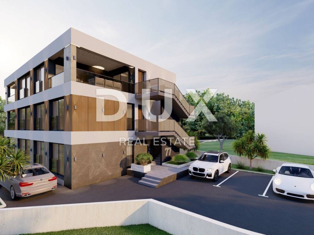 U posebnoj ponudi DUX nekretnina nalazi se fantastično zemljište 733 m2 s građevinskom dozvolom za ekskluzivnu stambenu zgradu s fantastičnim pogledom na more, a nalazi se na samo 500 m zračne linije od mora.