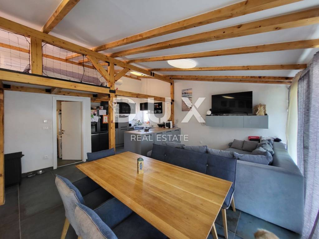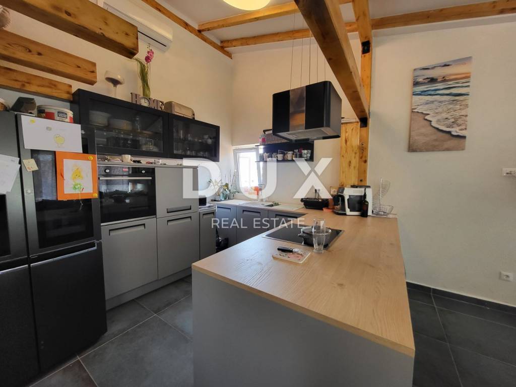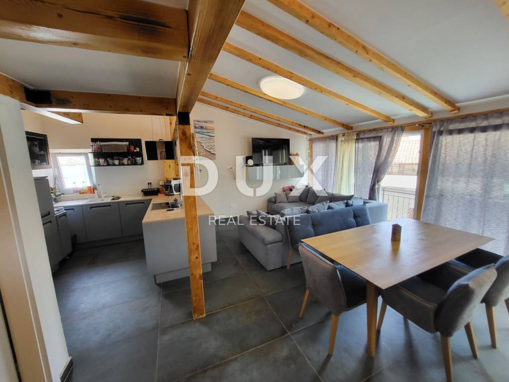 A spacious and very nicely and well-equipped apartment is for sale in Tisno on the island of Murter. The apartment is 95 m2 and consists of a large living room with kitchen and dining room, two bedrooms, one room on the gallery space, two bathrooms and a terrace. The apartment has a project and all the preparations for an extension for another 30 m2 in the roof area, which would provide two more bedrooms, another bathroom and a smaller terrace. In that case, the capacity of the apartment would be for 12 people, while it is currently possible to accommodate 8 people. The apartment is only 20 m from the beach and has a wonderful view of the sea. This location is very specific in terms of rental prices in the summer season due to the Garden Music festival that takes place throughout the summer, so the daily price of this apartment is very high, which ensures a very quick return on investment. Also, the apartment can be easily divided into two separate units, as the installations are adapted for various variants of space adaptation. The apartment is being sold due to an investment in another property. Don't miss the opportunity! Now is the right time to take advantage of this rare opportunity and become the owner of a beautiful apartment in Tisno. Contact us today to learn more and book your tour!
