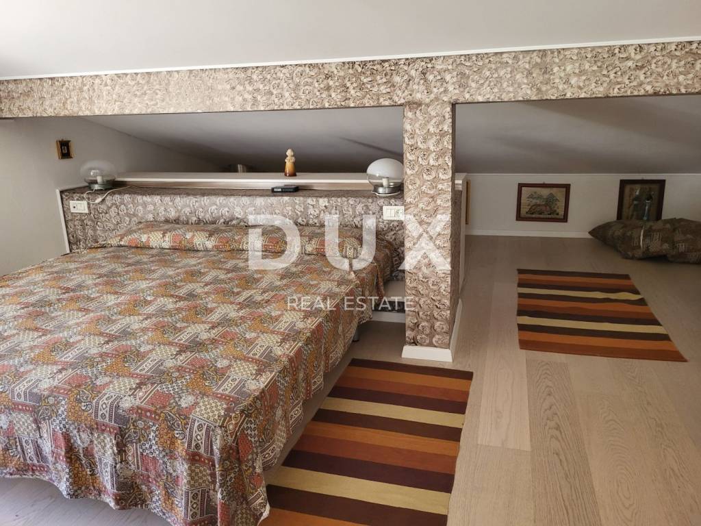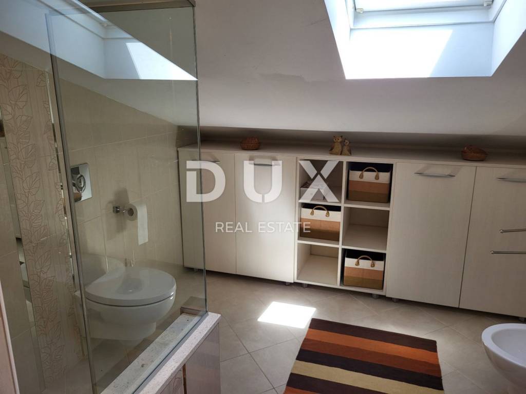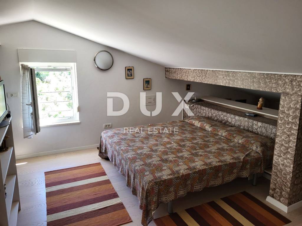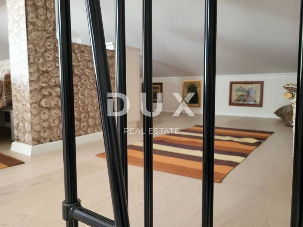 We are selling a two-story apartment with a spacious covered terrace with a beautiful view of the sea and islands. The apartment is located on the second floor and in the high attic of a residential building built in 2011. The apartment extends to 90 m2 and contains two bedrooms, a hallway, a kitchen and a dining room with a living room, a bathroom and a covered terrace of 12 m2 on the first floor. On the second, upper floor in the high attic, there is a bedroom, a work area and a bathroom. Heating and cooling is via air conditioners on each floor. The apartment is fully furnished and is being sold as such. The apartment also has a garage parking space of 19 m2. The distance to the sea and the beach is 200 m. Dear clients, the agency commission is charged in accordance with the General Business Conditions: www.dux-nekretnine.hr/opci-uvjeti-poslovanja