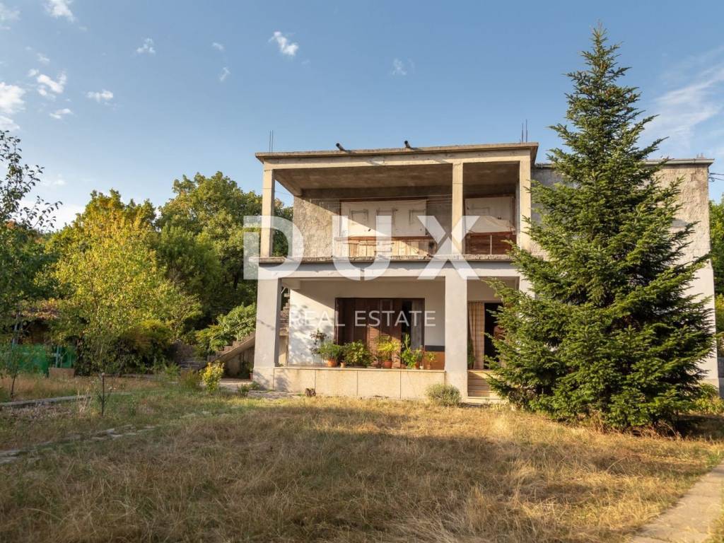 We mediate in the sale of a beautiful detached house on a large plot. Construction started in nature, but not completed, on 2 floors. The house consists of an arranged ground floor in the form of a two-room apartment with a living room, bathroom, ancillary rooms, boiler room, cellar, storage room and a large garage. There is a spacious terrace in front of the apartment. On the 1st floor, an apartment of 159 m (roh-bau version) with an external staircase and a beautiful large balcony/loggia with a view of the entire Kvarner, Opatija, Rijeka and the islands. According to the project and building permit, it is possible to build two additional floors. On the plot of 1274 m there is also a detached stone farm building of approx. 46 m which can also be used as a living space. A beautiful property, a house surrounded by a forest, one of the most beautiful and sought-after neighborhoods. A property worthy of attention, unique in its position and possibilities! Dear clients, the agency commission is charged in accordance with the General Business Conditions www.dux-nekretnine.hr/opci-uvjeti-poslovanja