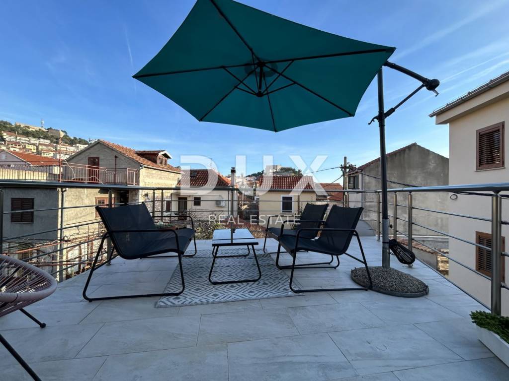 The house has an area of 72 m2. It consists of a ground floor and two floors. On the ground floor there is a studio apartment with a bathroom, kitchen and dining room and a spacious living room which is also a bedroom. On the first floor of the house there is a bathroom, an airy living room and a kitchen with a dining room, and on the second floor there is one bedroom with access to a beautiful terrace. From the terrace there is a wonderful view of the fortress of St. Mihovil. The house was renovated inside in 2023. Heating and cooling are provided by air conditioners, and the house has PVC joinery and good insulation. This property with a well-established tourist business is also a good investment for those who want to engage in tourism, but it can also become your holiday home or family home. Šibenik is a city located in the very heart of Dalmatia, rich in history and architecture. Šibenik is known for its numerous cultural and artistic monuments, and is one of the few cities in Croatia with even two monuments that are on the list of UNESCO's protected cultural heritage. Among them is the Sibenik Cathedral of St. Jakov from the 15th and 16th centuries. There are several National Parks and Nature Parks in the area. Kornati National Park, also known as the pearl of the Adriatic, is located in the immediate vicinity of Šibenik. Dear clients, the agency commission is charged in accordance with the General Business Conditions: www.dux-nekretnine.hr/opci-uvjeti-poslovanja
