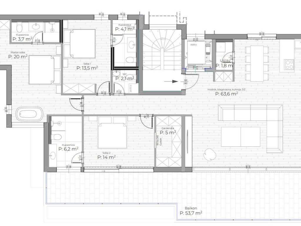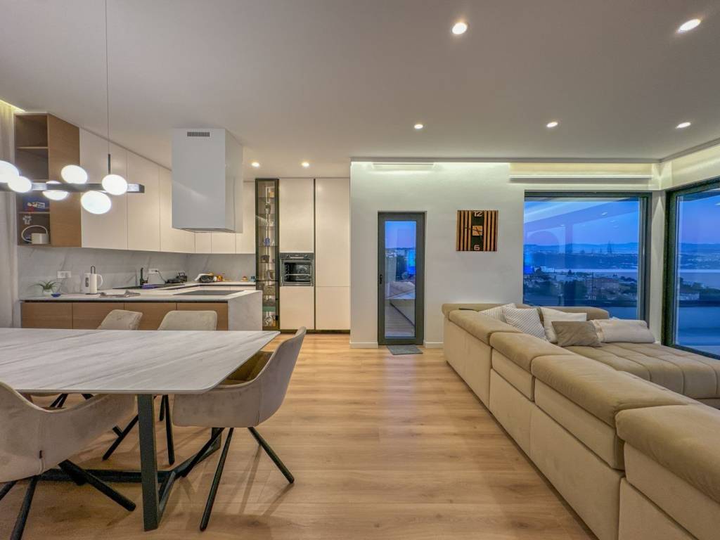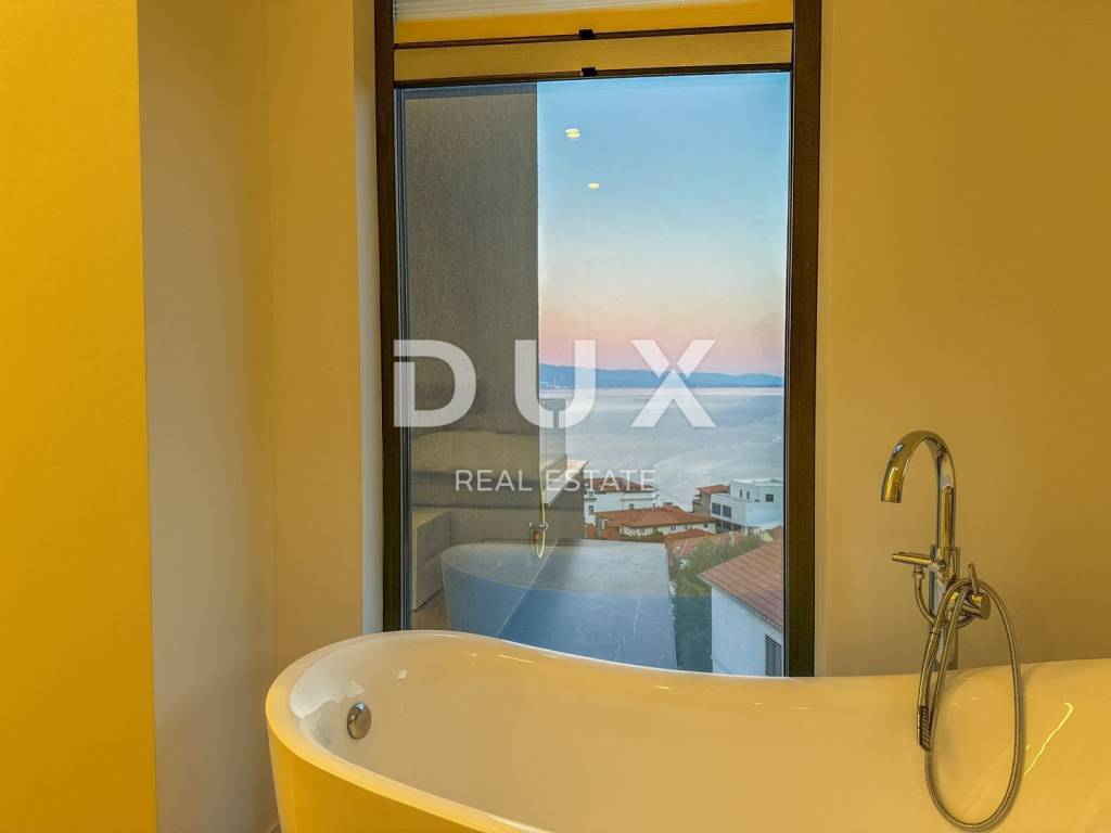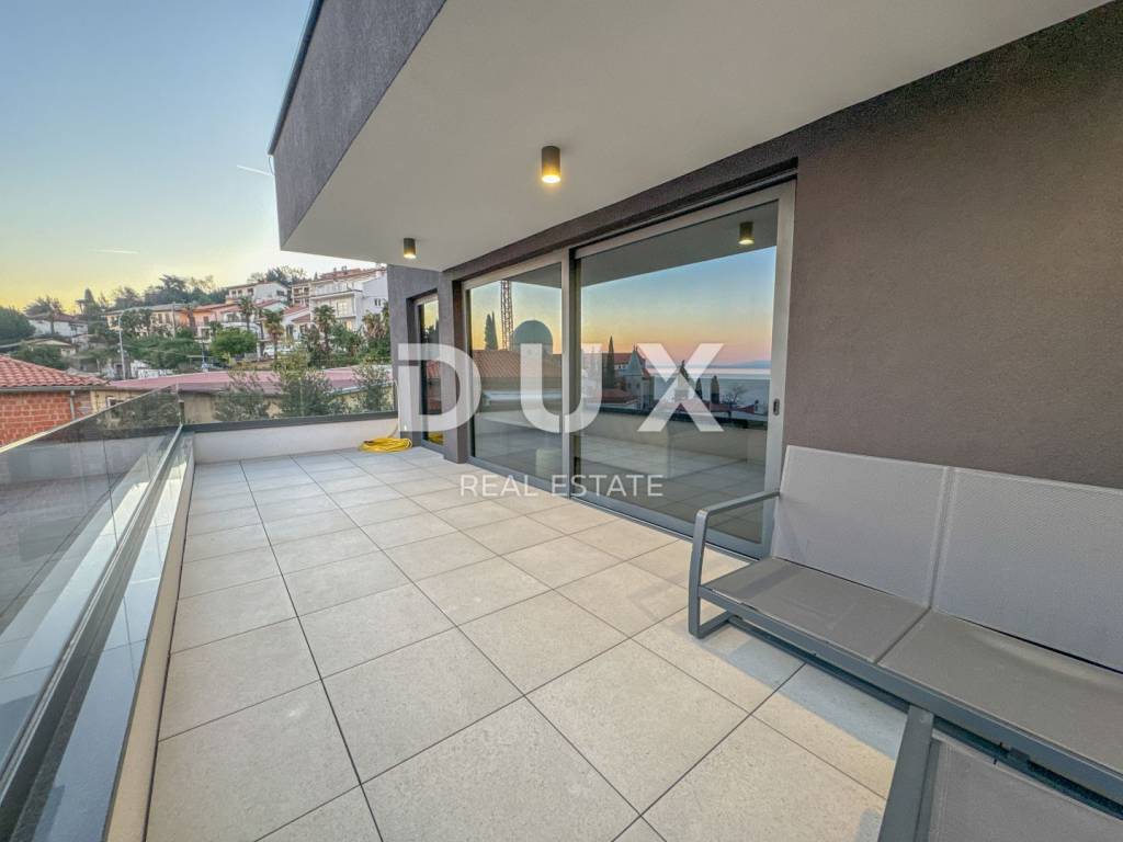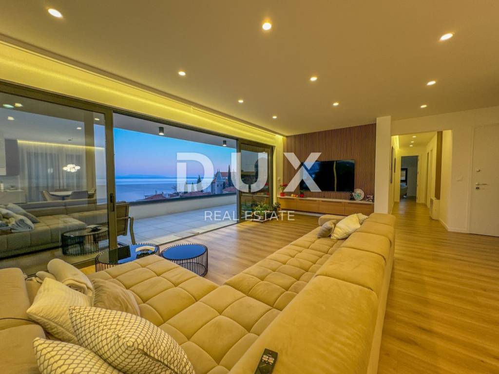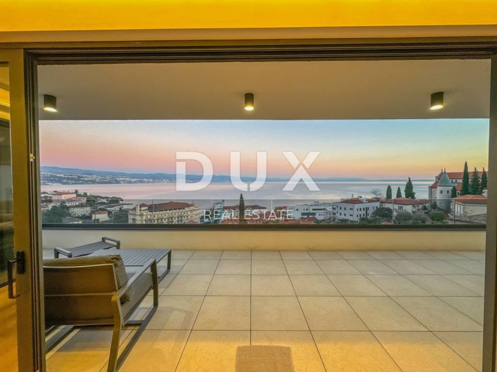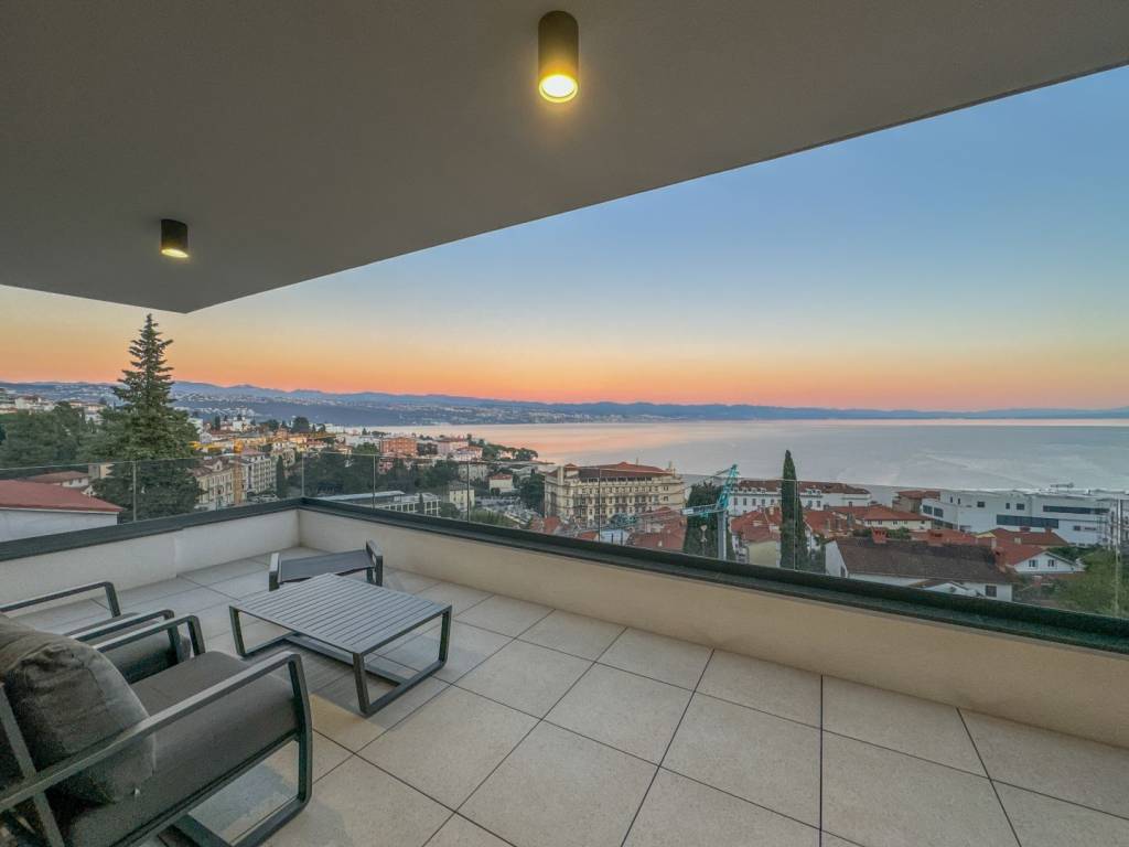 We present a spacious penthouse of 171m2 with three elegant bedrooms that provide a perfect balance between comfort and stylish design. The penthouse is located in the very center of Opatija on top of an attractive new building that ensures complete privacy. The spacious living room is combined with a modern kitchen, creating a pleasant and spacious space for relaxation and entertainment. In addition, the penthouse offers two separate bathrooms. All materials used in the construction and furnishing of the penthouse are of high quality. The impressive 51m2 terrace takes your breath away with its panoramic sea view, creating a perfect corner for relaxing and enjoying the sunsets. In addition, the building has a private garage, with two reserved parking spaces and additional storage, which will satisfy all your needs. One of the key advantages of this penthouse is access to a shared heated swimming pool on the roof with a view of the center of Opatija and the expanse of the sea, and preparations have also been made for a rooftop swimming pool. With an ideal location in the center of Opatija, just a one-minute walk from the sea and the Lungomare promenade, this penthouse is the perfect place to enjoy the beauty of the city. Dear clients, the agency commission is charged in accordance with the General Business Conditions: www.dux-nekretnine.hr/opci-uvjeti-poslovanja