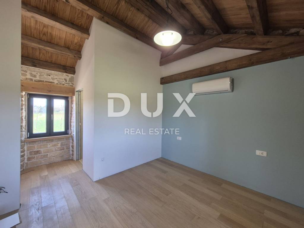 Barban is a small picturesque medieval acropolis-type settlement in the southern part of eastern Istria, located above the Raša river valley. Well-preserved architectural buildings from the Baroque and Gothic periods, frescoes and Glagolitic inscriptions, churches, palaces and city walls, the knightly game of the Ring Race, the traditional wine festival and the fig festival make Barban extremely attractive. The municipality of Barban, which has access to the sea in Raško Bay, covers an area of 100 km. Apart from Barban, there are 31 other settlements in the beautiful greenery of Barbanština. Near the town of Barban, a rustic house with a swimming pool is for sale. It is located on the edge of a gentle settlement, surrounded by nature and family houses. The newly renovated authentic house is fully adapted to the modern lifestyle and radiates an ambience filled with the warmth of wood and the freshness of stone. The living area is divided into ground floor and first floor. On the ground floor there is a space that unites the living room, dining room and kitchen with access to the terrace, a bedroom, a bathroom and a storage room. The floor consists of three bedrooms and two bathrooms. The spacious garden is fenced and landscaped and horticulturally arranged, and complete harmony is provided by a 50 m swimming pool with a sunbathing area and a covered summer kitchen.. The excellent location and the spatial organization of the interior and exterior of this property provide an opportunity for a comfortable family life or an investment investment in a tourist rental business. Dear clients, the agency commission is charged in accordance with the General Business Conditions: www.dux-nekretnine.hr/opci-uvjeti-poslovanja