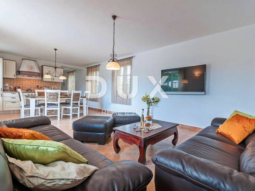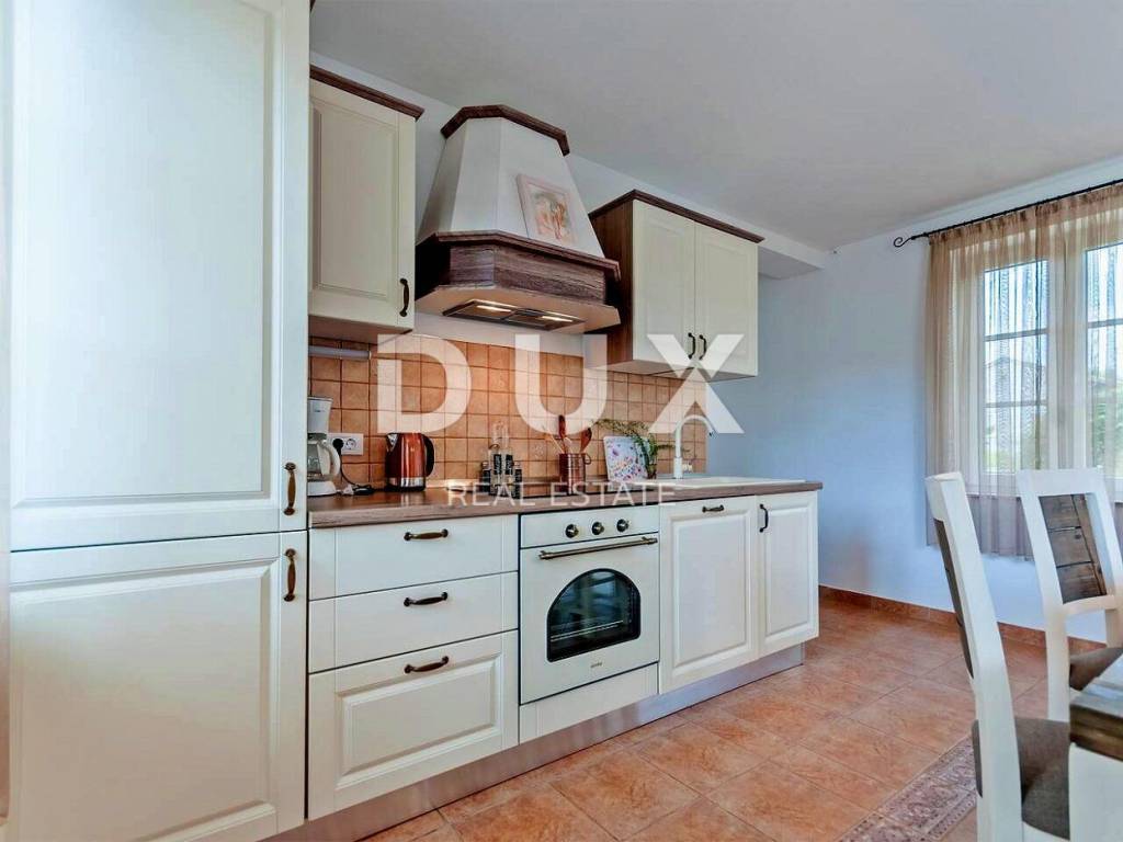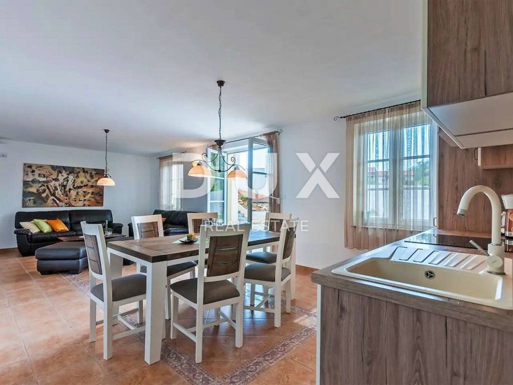 Barban is a small picturesque medieval acropolis-type settlement in the southern part of eastern Istria, located above the Raša river valley. Well-preserved architectural buildings from the Baroque and Gothic periods, frescoes and Glagolitic inscriptions, churches, palaces and city walls, the knightly game of the Ring Race, the traditional wine festival and the fig festival make Barban extremely attractive. The municipality of Barban, which has access to the sea in Raško Bay, covers an area of 100 km. Apart from Barban, there are 31 other settlements in the beautiful greenery of Barbanština. Not far from the town of Barban, an elegant house with a swimming pool is for sale. It is located in a gentle settlement, surrounded by nature, family houses and holiday homes, offering a perfect balance of rural surroundings and proximity to urban facilities. The house is designed as one residential unit that extends over two tastefully decorated and well-equipped floors. On the ground floor there is an open concept space that unites the living room, dining room and kitchen with access to the yard, two bedrooms with their own bathrooms and a storage room. The first floor consists of two bedrooms with their own bathrooms. On the fenced and landscaped garden, enriched with Mediterranean plants, there is a swimming pool with a sunbathing area, a covered summer kitchen with an open fireplace and a lounge area. This property in a quiet neighborhood is an ideal opportunity for a peaceful family life as well as an investment for the purpose of tourist rental.