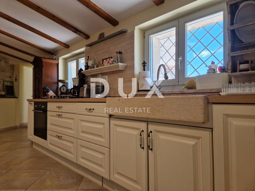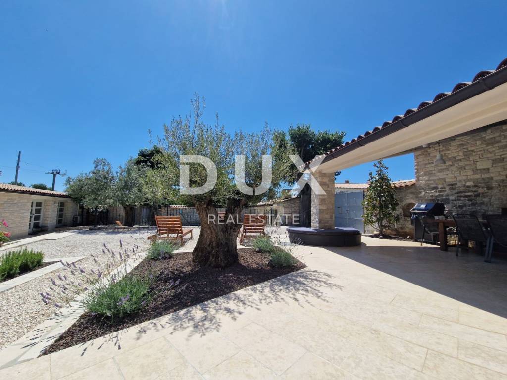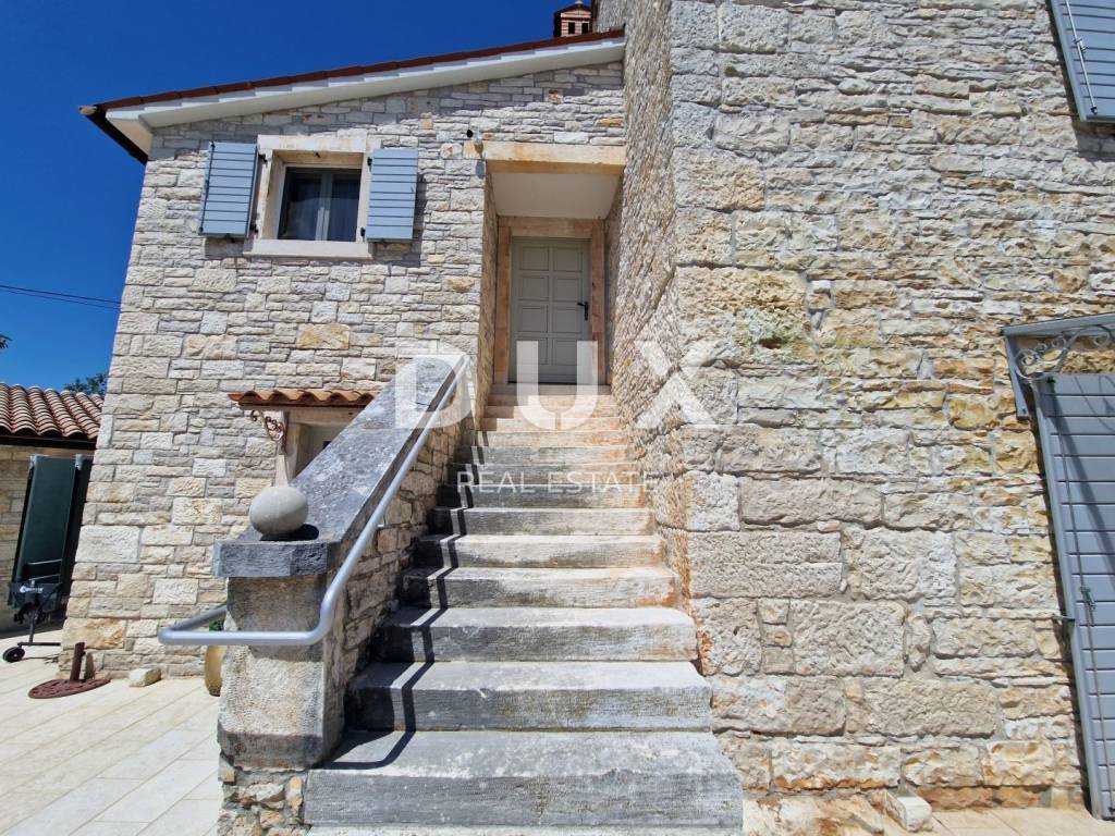 Renaissance town Svetvinčenat is one of the Istrian jewels with a rich tourist offer and numerous events that take place in the extraordinarily attractive historical spaces of this town. The symbol of the place itself and one of the most important fortifications of the Venetian army of that time in Istria is the Renaissance square of Placa with the Morosini-Grimani castle. This special town has a rich tradition, interesting and diverse programs, the most prominent of which are the Medieval Festival, the Cheese Festival and the Dance and Non-Verbal Theater Festival, which attract many visitors every year. A stone Istrian house with two residential units is for sale in this beautiful Renaissance town. The house is located in a quiet neighborhood, completely surrounded by a stone wall and secured by an alarm system. It is located last in the row and thus provides complete privacy. Two auxiliary buildings and a swimming pool with a beach are located on the garden decorated in a Mediterranean style. There is also parking for three cars. The house has an area of 154m2 spread over two floors. On the ground floor of the house there is a kitchen with a dining room, a living room, a hallway and a guest toilet. The terrace of the house is accessed from the kitchen and also from the living room. Exiting the kitchen leads to a covered terrace with a table for 8 people and a barbecue. The internal stairs lead to the first floor of the house, where there are two bedrooms, one of which has a walk-in closet. On the first floor of the house there is also a bathroom and an exit from the house. The internal stairs lead to the second and last floor of the house. Ovidje has a bedroom with a walk-in closet and a bathroom. The heating system was implemented on several options; pellet central heating, solid fuel stove and a solar hot water heating system on the roof of the house. The house is equipped with air conditioning. The second residential unit is 54m2 and is located right next to the pool. The house, ground floor, consists of an "open space" kitchen with a dining room, a bedroom and a bathroom. Next to the house there is a terrace with a stone table for 4 people. The house is equipped with an air conditioner. The house is heated using a wood stove. A swimming pool and three auxiliary facilities are located on the beautifully landscaped and stone-clad grounds. The first and second auxiliary objects are located opposite the pool, in a row, and have an area of 30m2 and 27m2. The third auxiliary facility, i.e. the warehouse, is located next to the entrance to the parking lot. The house has been completely renovated and built and paved with stone blocks, which makes it special and as such is a rarity on the market! Only high-quality materials were used in the construction and furnishing of the house. The house is sold furnished, and as such it is ready for immediate occupancy. Ownership 1/1. No burden. The property is located not far from all facilities necessary for a beautiful and pleasant life. The distance to the sea is 20 km, or a 25-minute drive will take you to beautiful beaches and crystal clear sea. Certainly a beautiful property for a luxurious family life, but also suitable as an investment in the form of elite tourism. A UNIQUE PROPERTY DEFINITELY WORTH YOUR ATTENTION IN A GREAT LOCATION!!!