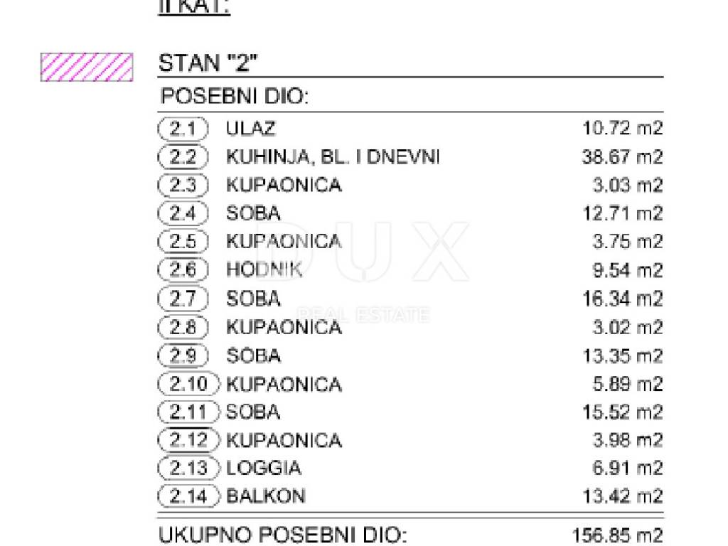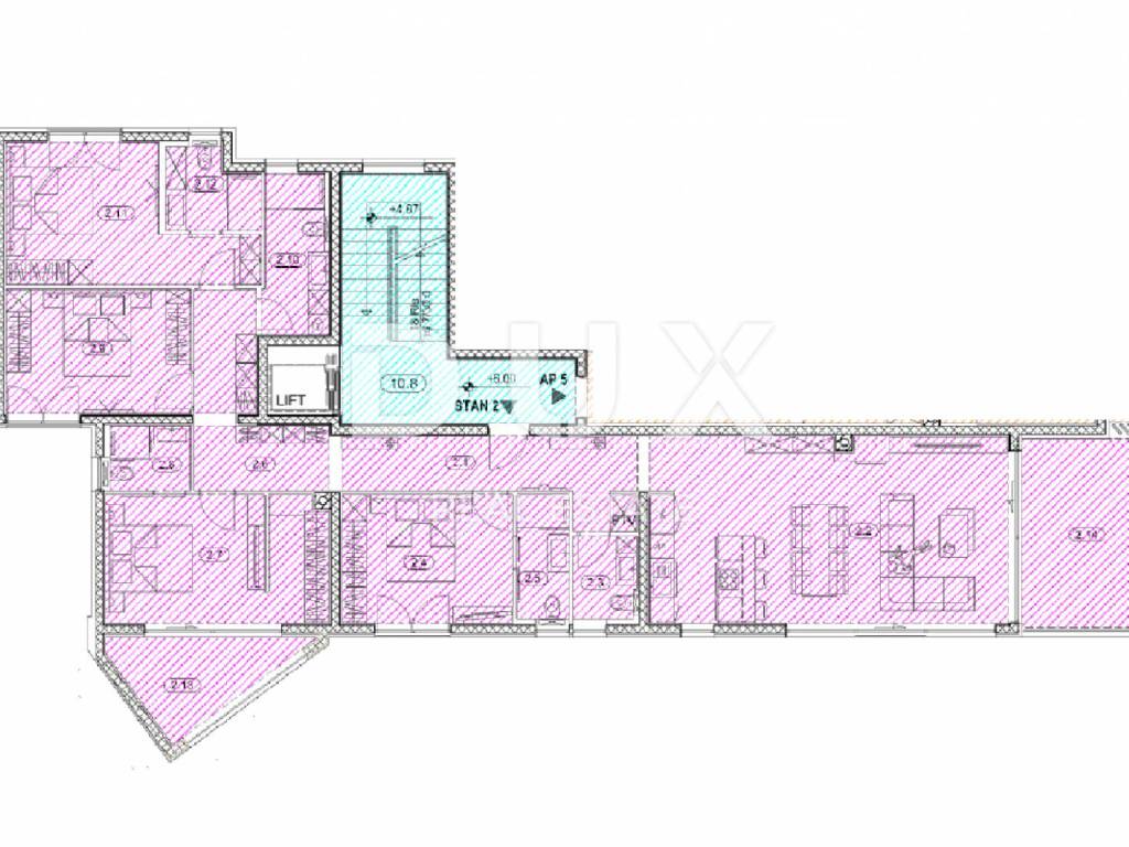 The apartment consists of: Entrance Hallway Kitchen / dining room / living room Bathroom 1 Bathroom 2 Bathroom 3 Bathroom 4 Bathroom 5 Room 1 Room 2 Room 3 Room 4 Covered balcony Loggia Stan is located in a peaceful and quiet location, yet in the immediate vicinity of all the necessary amenities for a quality life. The apartment is south-oriented with large glass walls in all rooms on the south side, so that from those rooms there is a panoramic view of the entire Kvarner Bay. The apartment consists of a large living room, which is designed as a spacious open space with access to the terrace, kitchen, 4 bedrooms, 4 bathrooms, guest toilet, wardrobe and hallway. The building in which the apartment is located is well built and luxuriously equipped, all installed materials, floor and wall coverings are of the highest standards. - facade stone wool 10 cm thick - underfloor heating - heat pumps - high quality aluminum carpentry. The building in which the apartment is located consists of a total of 9 apartments. The building has an elevator, the apartment has 2 parking spaces in the garage and 1 outdoor parking space (Garage Parking space 13 - 12.61m2 and Garage Parking space 14 - 12.56m2 = total 25.17m2, and Outdoor Parking space P2 - 12.50m2) . Clean and tidy property. Certainly a beautiful property for a luxurious family life, but also suitable as an investment in the form of elite tourism. This property is 450m away from the sea and the beach as the crow flies, or 1.4km by car (about 3 minutes). A UNIQUE PROPERTY DEFINITELY WORTH YOUR ATTENTION IN A GREAT LOCATION!!! Opatija: Opatija, a beautiful coastal town located on the Adriatic Sea, is a famous tourist destination for tourists from all over the world. The city is surrounded by beautiful nature, at the foot of the Učka mountain. Real estate in Opatija offers a priceless view of the sea and the surrounding islands of Krk and Cres. Opatija is surrounded by charming small towns with old houses located in narrow streets rich in history. The streets of the city of Opatija are made up of properties that stand out with their specific architecture and villas that date from the Habsburg period. A large selection of beaches, crystal clear sea and various tourist services are the key factors that make Opatija a perfect tourist destination recognized by neighboring countries as an excellent investment choice. Real estate prices in this area are rising, rental occupancy is excellent, which has resulted in a return on investment of 5% to 10% and attracting foreign investors. Dear clients, the agency commission is charged in accordance with the General terms and conditions of business: www.dux-nekretnine.hr/opci-uvjeti-poslovanja Dear potential buyers, tenants and lessees, viewing the property that you are interested in and in which you have an interest is possible only and exclusively with the signing of the Real Estate Brokerage Agreement, for the purpose of protecting the owner of the property from visits by unregistered persons, and in accordance with the Data Protection Act and the Real Estate Brokerage Act. When viewing each property, the potential buyer/lessee/lessee is required to fill out and sign the Real Estate Brokerage Agreement, which states the following: - basic information about the potential buyer/lessee/lessee - basic information about the agency - the amount of the agency commission The agency commission for the buyer is 3 % (+25% VAT) of the total agreed purchase price. The agency commission for the lessee is one monthly rent (+ 25% VAT).