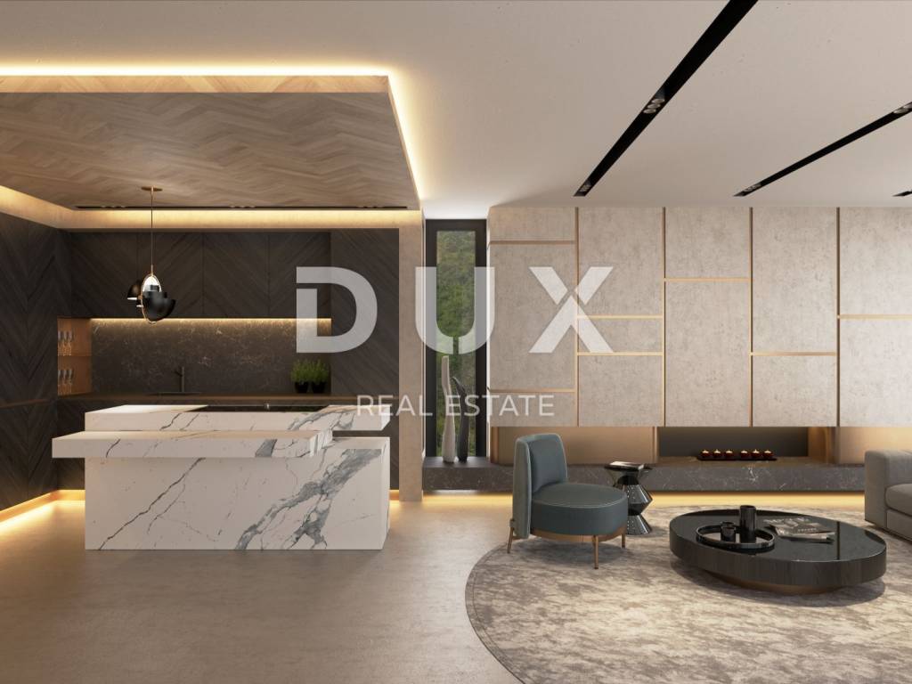 We mediate in the sale of luxury new buildings with a view of the sea and Opatija. The building will be of exclusive construction with a swimming pool, elevator, garage and spacious terraces. It is located on top of a hill and is surrounded by greenery. A rarity and an opportunity for all types of buyers. A luxurious one-room apartment is located on the ground floor: - living room, kitchen and dining room - 42.90 m2 - bedroom - 19.66 m2 - bathroom - 5 m2 - separate toilet - 3.67 m2 - corridor - 10.19 m2 - terrace - 35.87 m2 - storage room/laundry room - 5.71 m2 The apartment also has a parking space of 15 m2 and a garage space of 15 m2. The sunbathing area and swimming pool are shared. Each apartment will be equipped with a modern cooling system, quality ceramics, lighting and carpentry. Recommendation of agents!