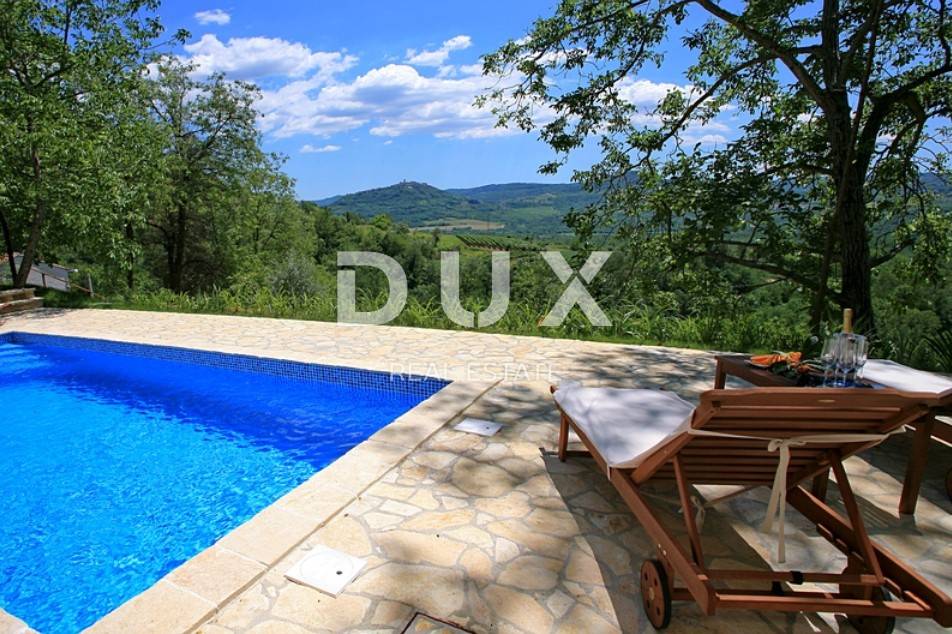 A stone house with a swimming pool and a beautiful view of Motovun is for sale near Oprtlje.