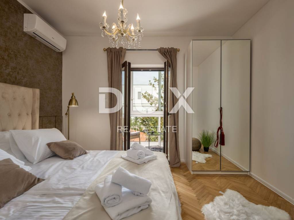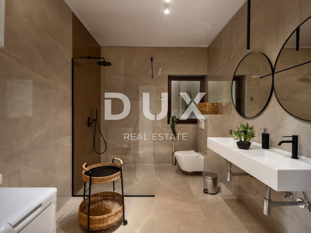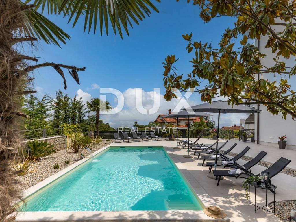 OPATIJA, IČIĆI - NEW - apartment 135m2 for long-term rent, swimming pool, terrace, panoramic sea view We highlight a beautiful apartment near Opatija for long-term rent. It is a beautiful apartment on the second floor with a size of 120m2, which extends over the entire floor with 2 large bedrooms, 2 large bathrooms, a living room with a kitchen and a dining room, and a loggia with a panoramic view of the sea. The apartment is located in a newer building with a total of 5 apartments. The household has a shared new heated swimming pool and a beautiful private oasis for enjoyment. The rent also includes a private parking space within the building. A lot of effort was put into the interior design and attention was paid to every detail. The owners themselves live in the building, which guarantees a regularly maintained garden and swimming pool. The property is located in a quiet cul-de-sac in Ičića, surrounded by greenery and a view of the sea. You can reach Ičići or Lungomare beach in 10 minutes on foot or 3 minutes by car. OPTICAL FAST INTERNET! A truly rare opportunity for those looking for a comfortable long-term home! Dear clients, the agency commission is charged in accordance with the General Business Conditions www.dux-nekretnine.hr/opci-uvjeti-poslovanja