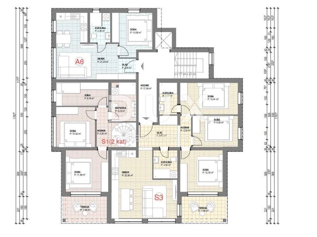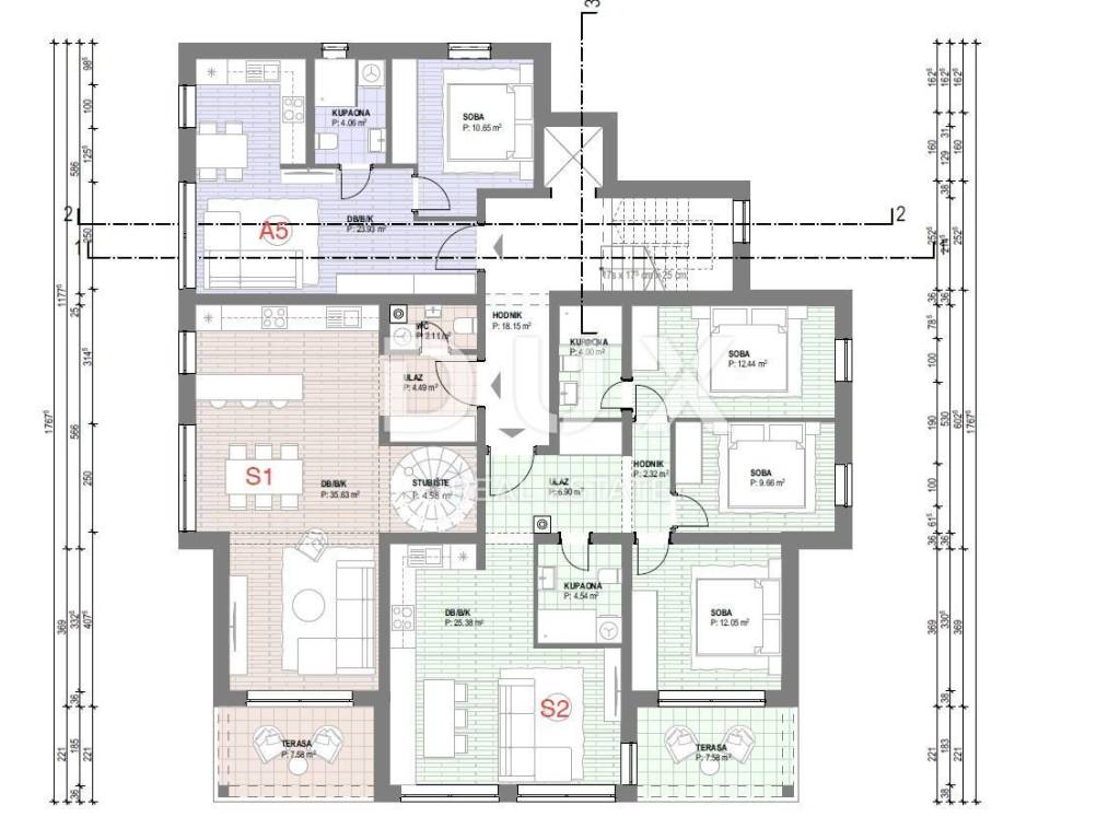 From the Dux offer, we highlight a special new building near Ičići beach of top quality. This rare building under construction in 2023 is located only 600 meters from the beach in a private, cul-de-sac and offers panoramic sea views. With its easy access to the city center, this home offers an excellent balance between elegant suburban living and the rich array of amenities that the city of Opatija has to offer. Two-story apartment S1, size 96m2, is located on the 1st and 2nd floors of a residential building and consists of a hallway, living room with kitchen and dining room (36m2), 3 bedrooms, 1 bathroom + 1 toilet and two terraces with a panoramic view of the sea . The project is being built on a plot of 805 m2 and includes a large underground garage, a ground floor with a shared pool, a sundeck and a gazebo with a barbecue, and a total of 9 apartments (6 apartments and 3 apartments) heating/cooling via a fan coil system parquet in the living room and bedrooms high-quality ceramic tiles and underfloor heating in the bathrooms anti-burglary entrance doors LIFT! The Mediterranean style of construction will delight you, while enjoying the silence of the peaceful environment. Perfect investment or opportunity for people looking for 4 walls on the sea CLOSE TO OPATIJA. Walking to the sea takes 7 minutes, or 600 meters on a slightly downhill path. The great advantage of this location is silence, privacy, a view of the sea, the greenery of Učka and the proximity of Opatija. The project was conceived in such a way that each apartment in the building has privacy, does not disturb the neighbor, and the floors have a direct view of the sea. The great advantage of this beautiful building is the future garden, which will be decorated with exotic and Mediterranean plants, a swimming pool, and a decorative pond. IN THE VAT SYSTEM - the property is owned by the company - the possibility of submitting a request for a VAT refund. The price includes one garage parking space, one outdoor parking space and an internal storage room. It will be available for occupancy on 06/24 UNIQUE OPPORTUNITY FOR NEW BUILDING ON THE OPATIJA RIVIERA!