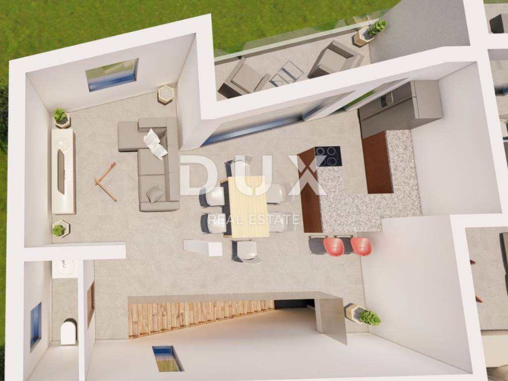 Dear clients, we offer the last apartment for sale in an exclusive new building. It is a beautiful two-story apartment measuring 99m2 + an additional roof terrace of 60m2! This apartment in a new building has the following layout: 1ST FLOOR - entrance, hallway, staircase, two bedrooms with two separate bathrooms, terrace 10m2 with a panoramic view of the sea 2ND FLOOR - staircase, toilet, open space living room with kitchen and dining room 40m2 + 10m2 terrace with a view of the sea Mobile stairs lead to the aforementioned roof terrace of 60m2. The building consists of a total of 4 apartments, each apartment has 2 private parking spaces, and is located in a quiet, side street above Ika beach, literally surrounded by a green belt and two neighbors. Every window or terrace offers a panoramic view of the sea. The location of the property is ideal, the air line from the sea is 300m, and the drive to the sea takes two minutes. The roof terrace will be private, with a glass fence and insulated and paved with beautiful honey-colored tiles. The roof terrace was also exposed to electricity.
