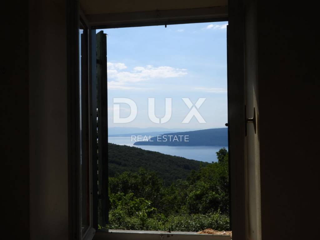 Detached house with a total area of 200m2, consisting of GROUND FLOOR and FLOOR: GROUND FLOOR: - now in the nature of a smaller apartment that needs to be completely adapted FLOOR: - in the nature of an apartment / apartment that is mostly adapted and habitable, and consists of 2 rooms, kitchen, hallway and bathroom. The house has electricity and water connection. The roof of the house has been completely adapted, investment in the facade is required. The house has approx. 700 m2 of garden and secured access. View of the Kvarner Bay (Krk, Cres)!